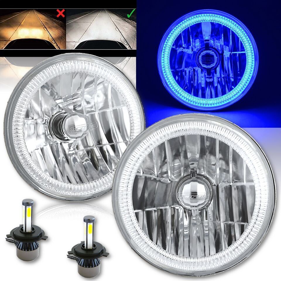 7" Blue COB LED Halo Angel Eye Headlights 6K 4000Lm LED Light Bulb Headlamp Kit
