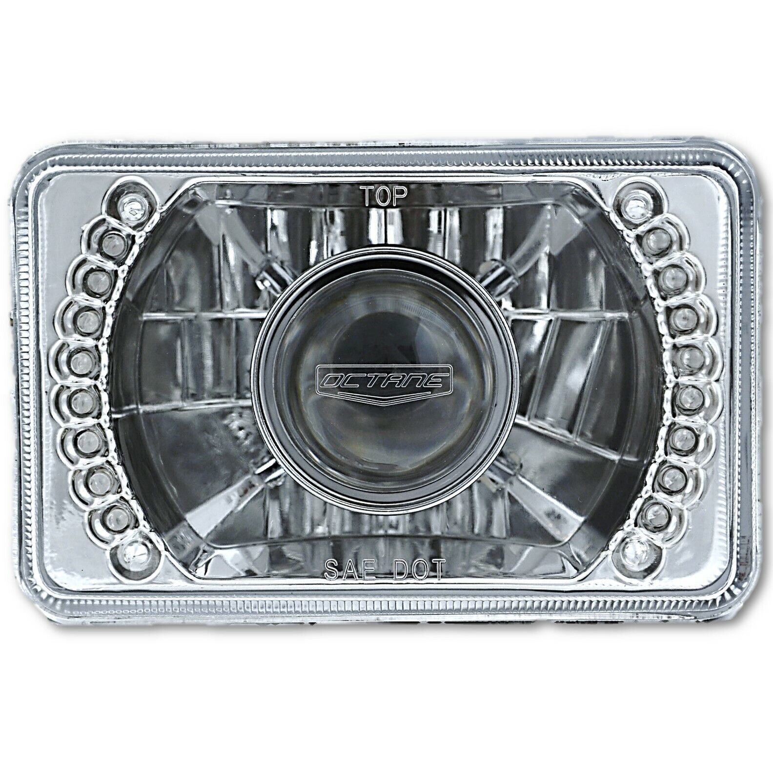 This listing is for a pair of 2 new 4" x 6" crystal clear headlights amber LED halo projector headlights with 6000k HID Xenon light bulbs. This set includes 2 low/high beam headlights with H4 HID 6000k (white) light bulbs. These have the original shaped prongs on the back so they will plug right into your original wiring harness plugs. These light up 200% brighter and whiter compared to the stock style incandescent bulbs. This kit will be a night a day difference in brightness compared to your old headlights. These are for any car or truck that has 4 square 4x6" headlights. The headlights have glass lenses and we will take extra care in packaging.