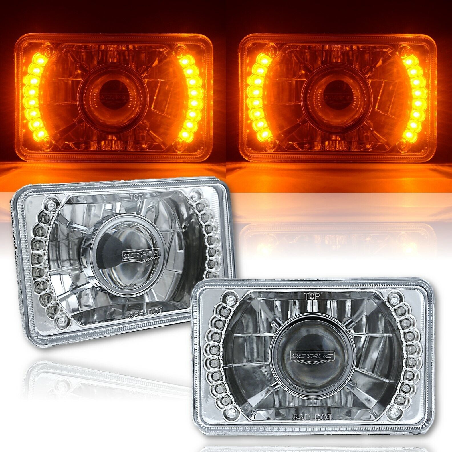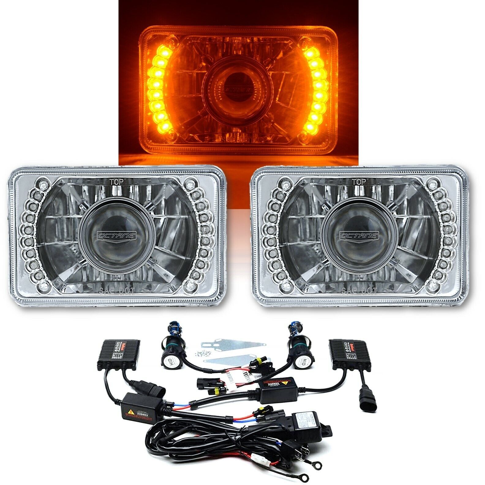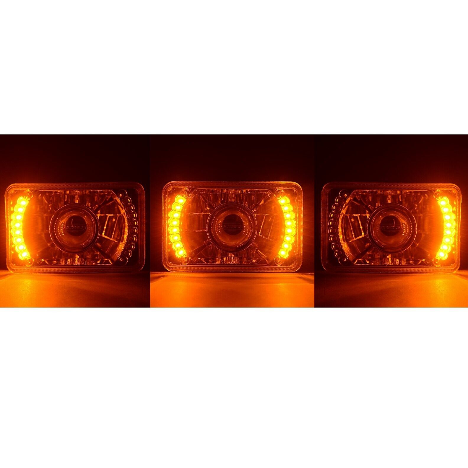 4X6" Amber LED Halo Projector Headlight 6K 6000K HID Headlamp Light Bulbs Pair