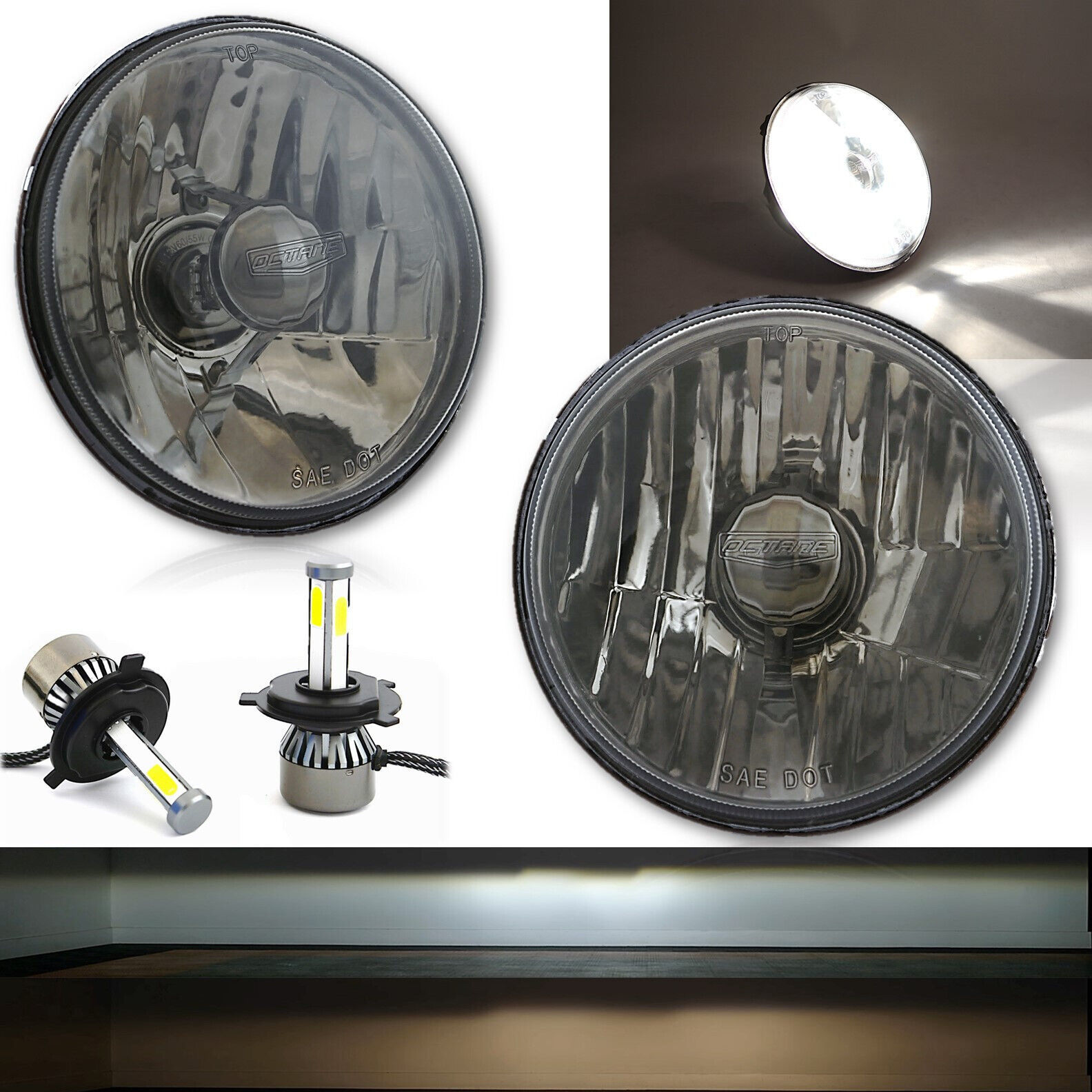 5-3/4" Smoked Crystal Headlight Black Glass Fog Light 20/40w H4 LED Bulbs Pair