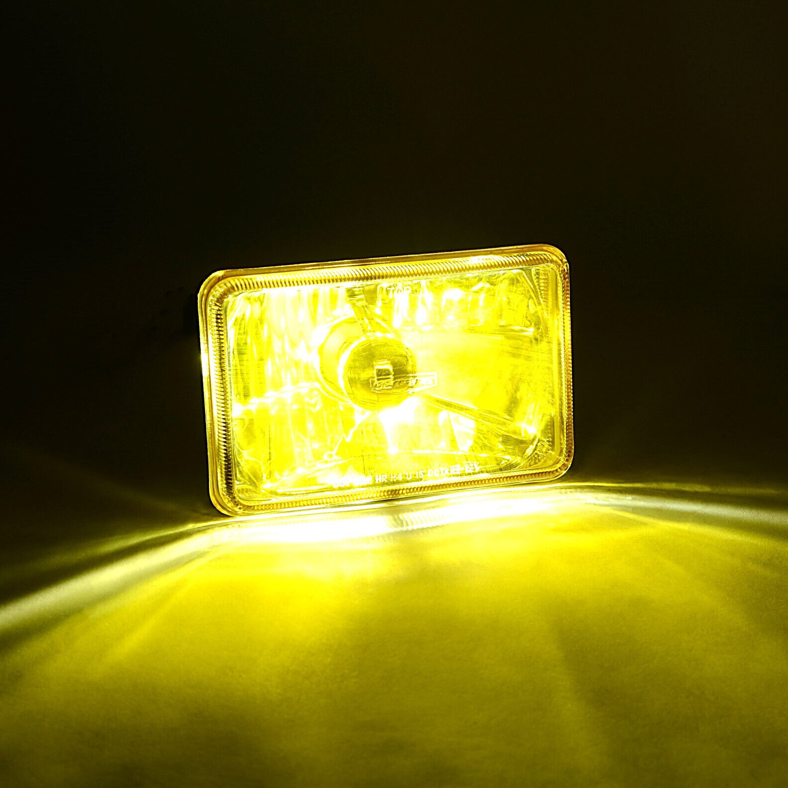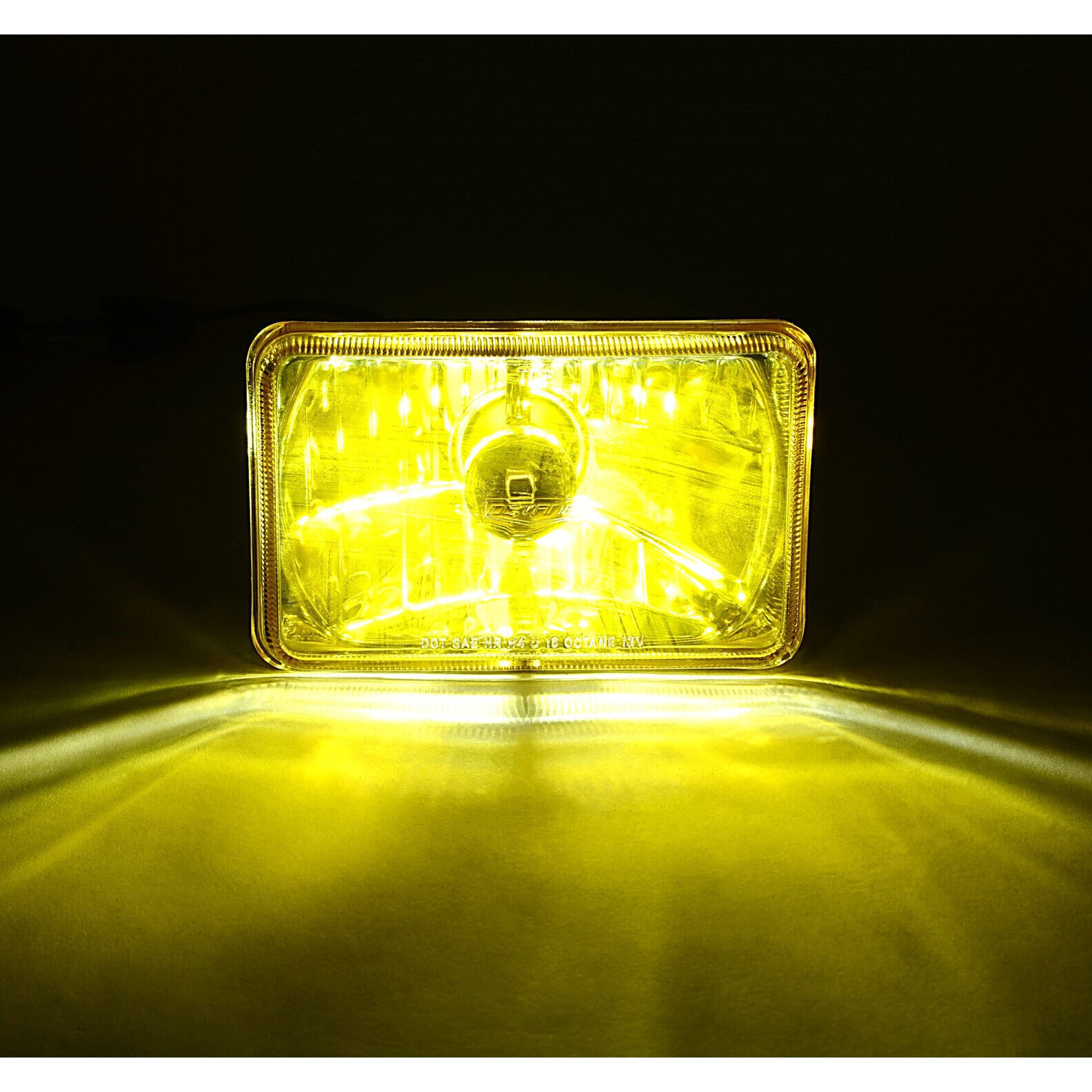 4X6 Crystal Yellow Glass Lens Metal Headlight 18/24w LED Lamp Bulb Headlamp Pair