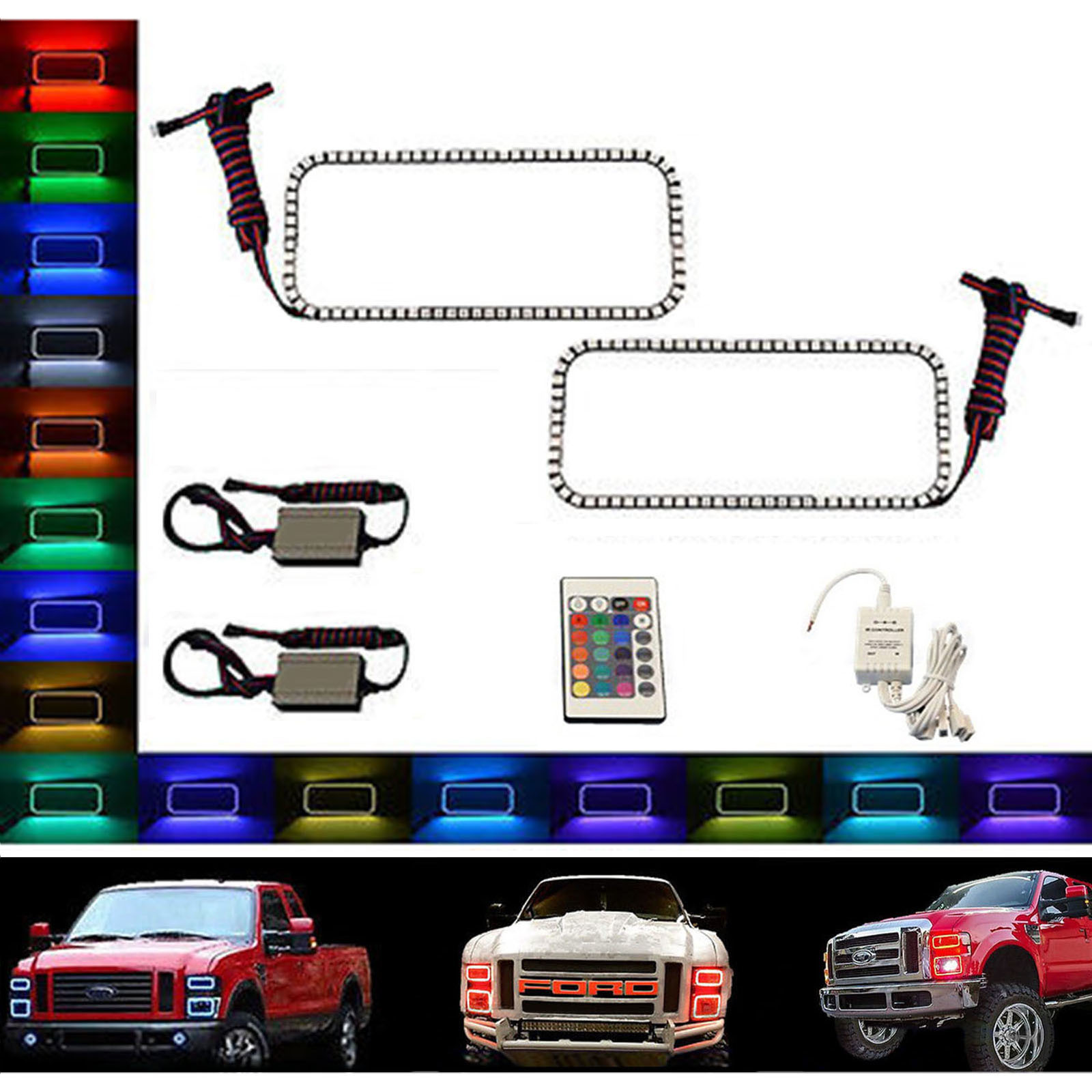 08-10 Ford F-250 Multi-Color Changing LED RGB Halo Upper Headlight Rings Pair IR