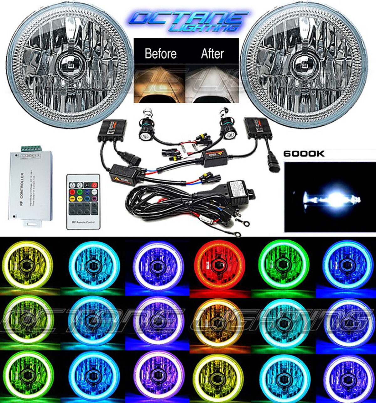 5-3/4 RF RGB SMD LED Color Change Halo Shift Angel Eye 6000K HID Headlights Pair