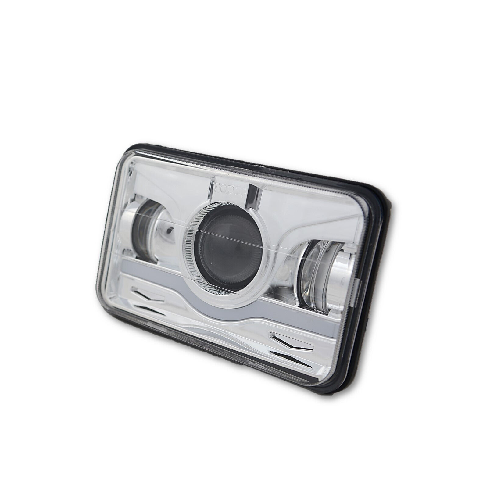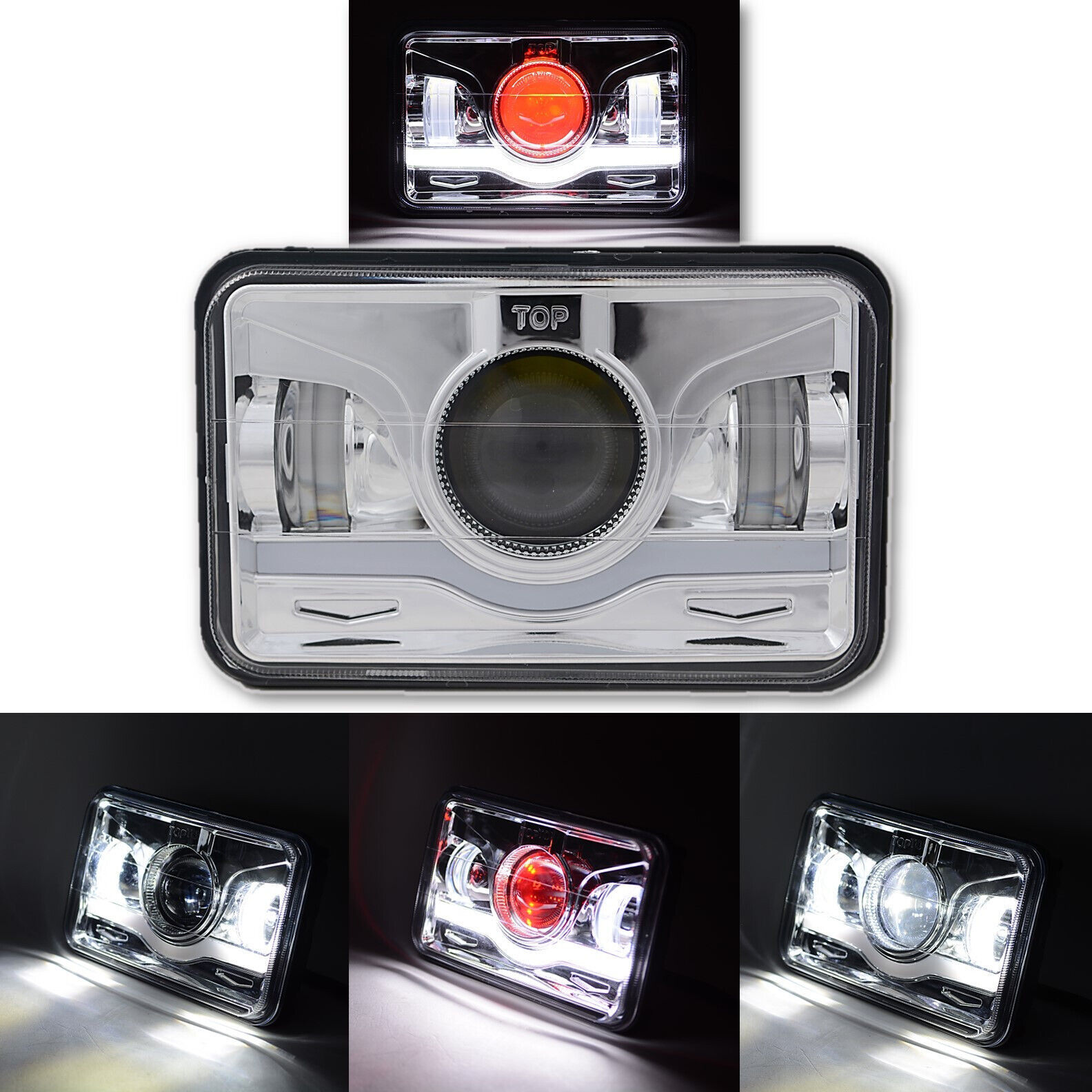 THIS LISTING IS FOR ONE NEW 4x6" CHROME CLEAR POLYCARBONATE FACED - ALUMINUM BACKED HEADLAMP BULB WITH WHITE LEDs INSIDE THE HOUSING. THIS HEADLIGHT ALSO HAS A WHITE DRL W/ RED PROJECTOR BULB. THIS LISTING IS FOR 1 HEADLIGHT. THESE WILL FIT ANY CAR OR TRUCK THAT HAS 4X6 INCH HEADLIGHTS. SOME MODIFICATION TO THE HEADLIGHT BUCKET MAY BE REQUIRED, BUT ON MOST CARS THIS IS PLUG AND PLAY AND WILL ONLY TAKE YOU 15 MINUTES TO INSTALL WITH BASIC HAND TOOLS. WE WILL TAKE EXTRA CARE IN PACKAGING. INTERCHANGE: H4656 / H4651 / 4651 / 4652 / H4666