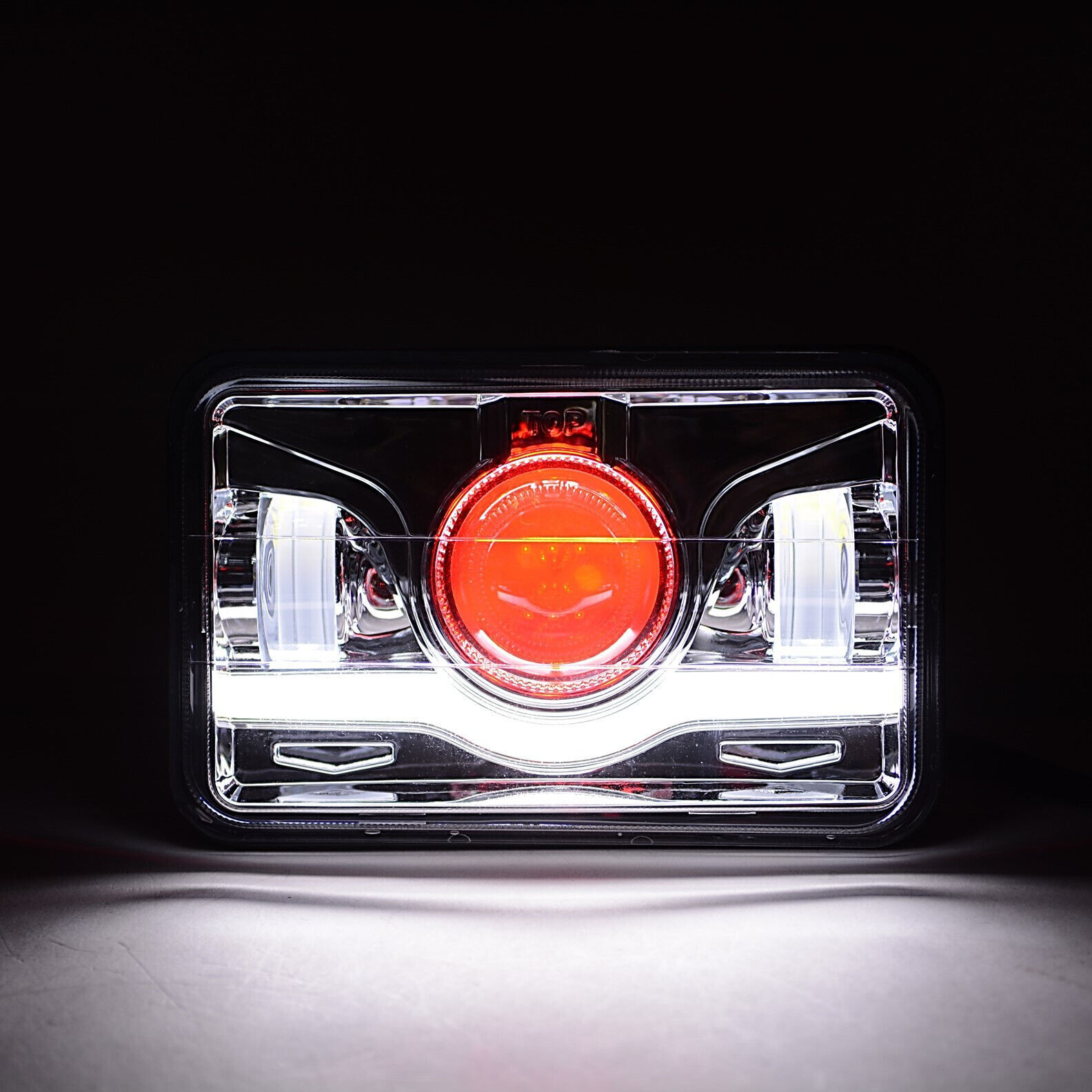 THIS LISTING IS FOR ONE NEW 4x6" CHROME CLEAR POLYCARBONATE FACED - ALUMINUM BACKED HEADLAMP BULB WITH WHITE LEDs INSIDE THE HOUSING. THIS HEADLIGHT ALSO HAS A WHITE DRL W/ RED PROJECTOR BULB. THIS LISTING IS FOR 1 HEADLIGHT. THESE WILL FIT ANY CAR OR TRUCK THAT HAS 4X6 INCH HEADLIGHTS. SOME MODIFICATION TO THE HEADLIGHT BUCKET MAY BE REQUIRED, BUT ON MOST CARS THIS IS PLUG AND PLAY AND WILL ONLY TAKE YOU 15 MINUTES TO INSTALL WITH BASIC HAND TOOLS. WE WILL TAKE EXTRA CARE IN PACKAGING. INTERCHANGE: H4656 / H4651 / 4651 / 4652 / H4666