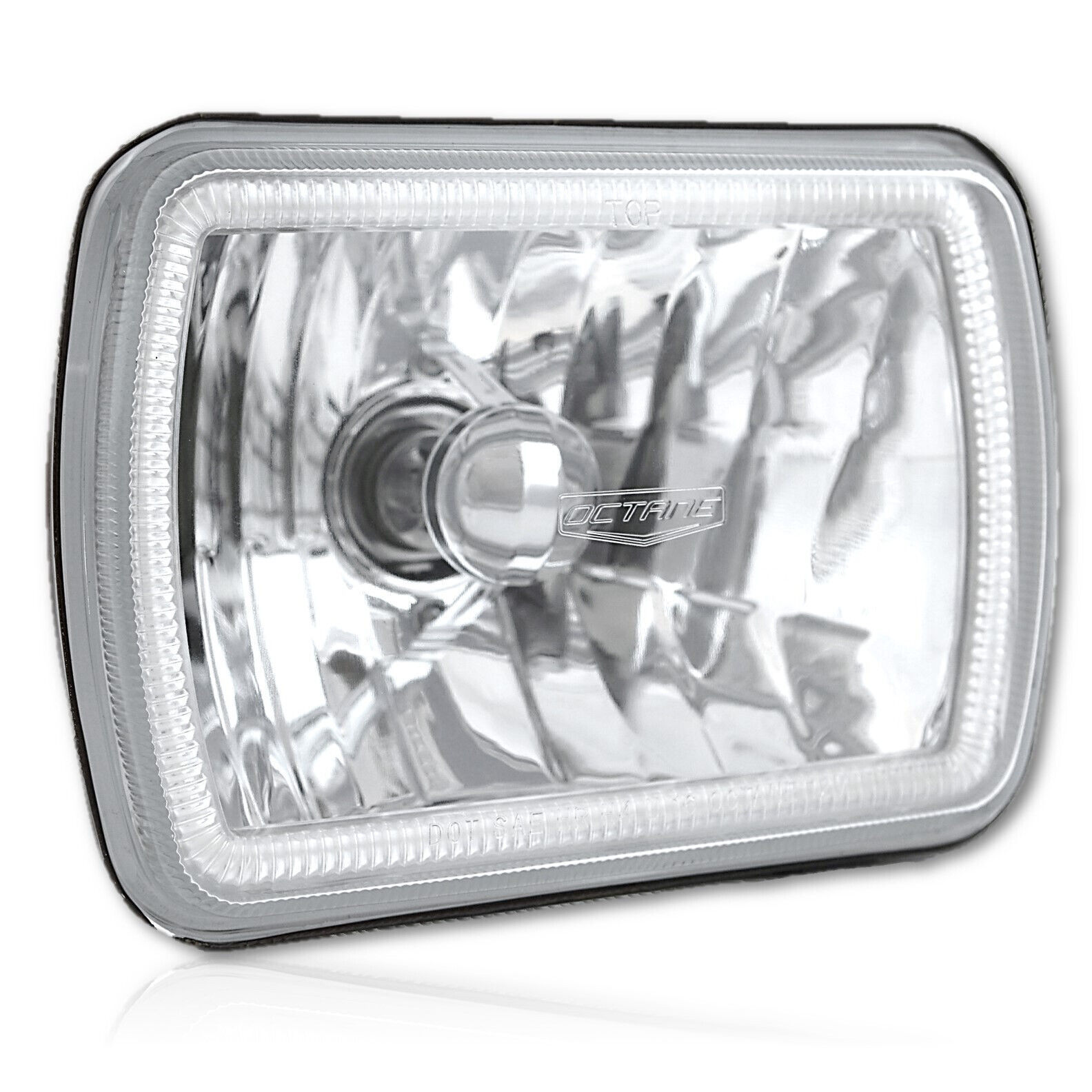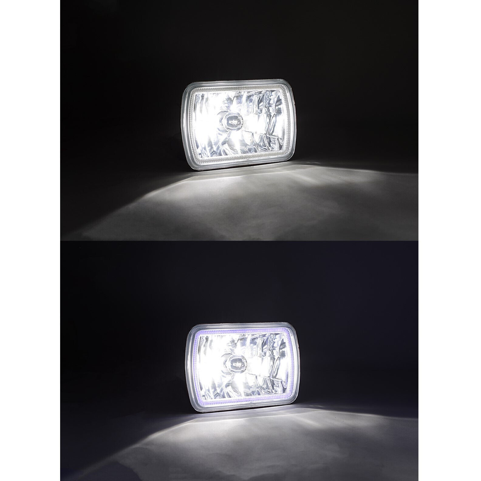 7X6" Square Crystal Halogen Headlamp w/ Purple SMD Halo Ring