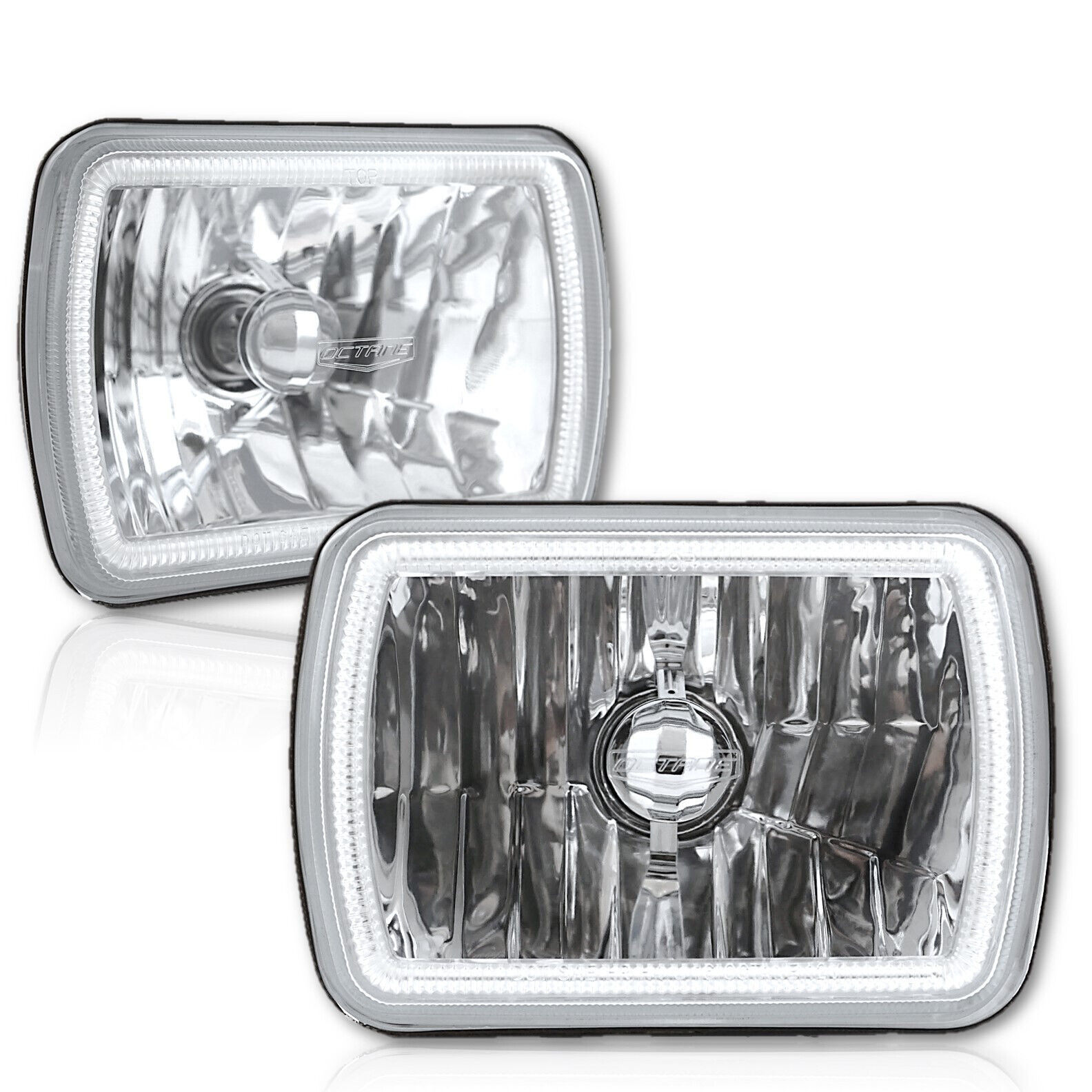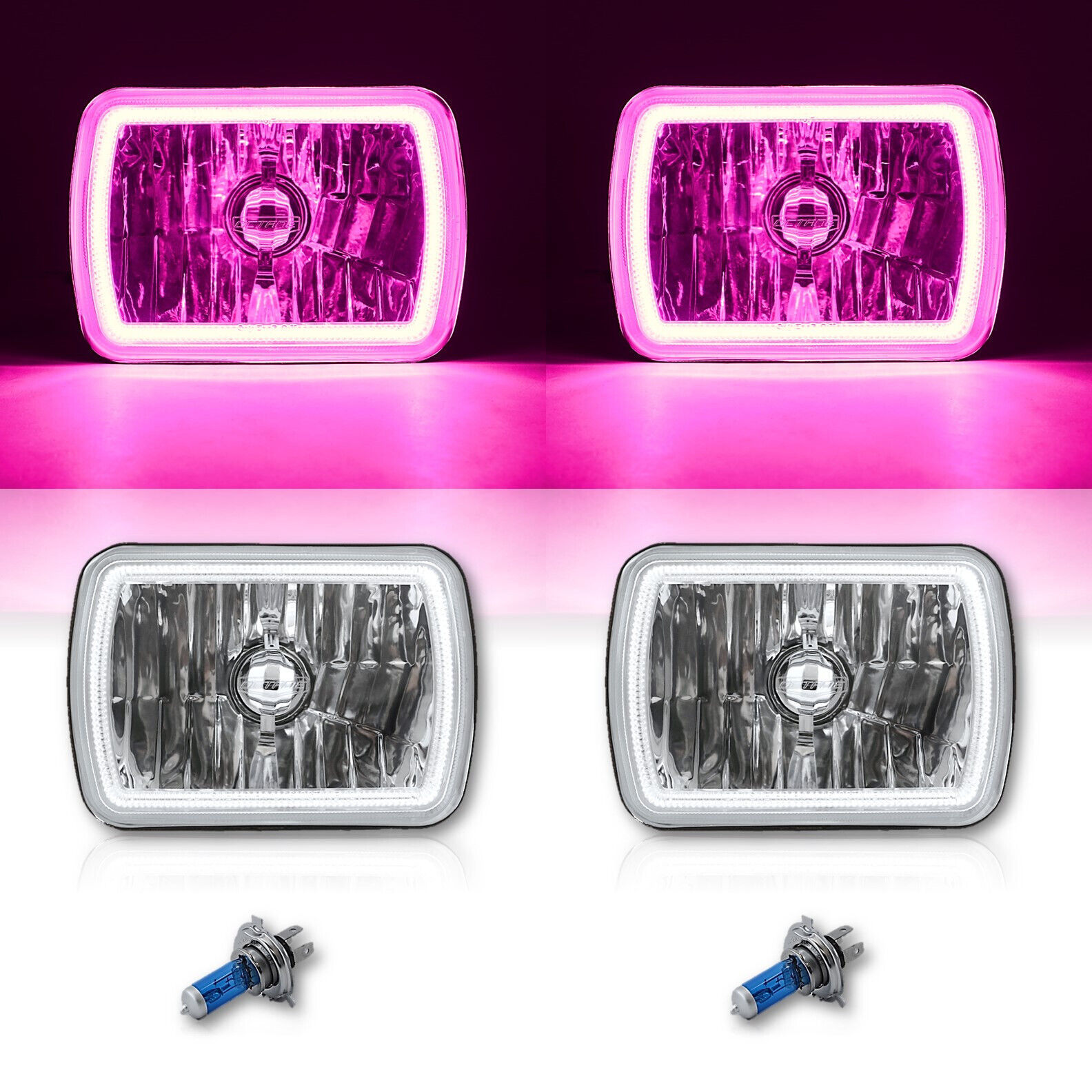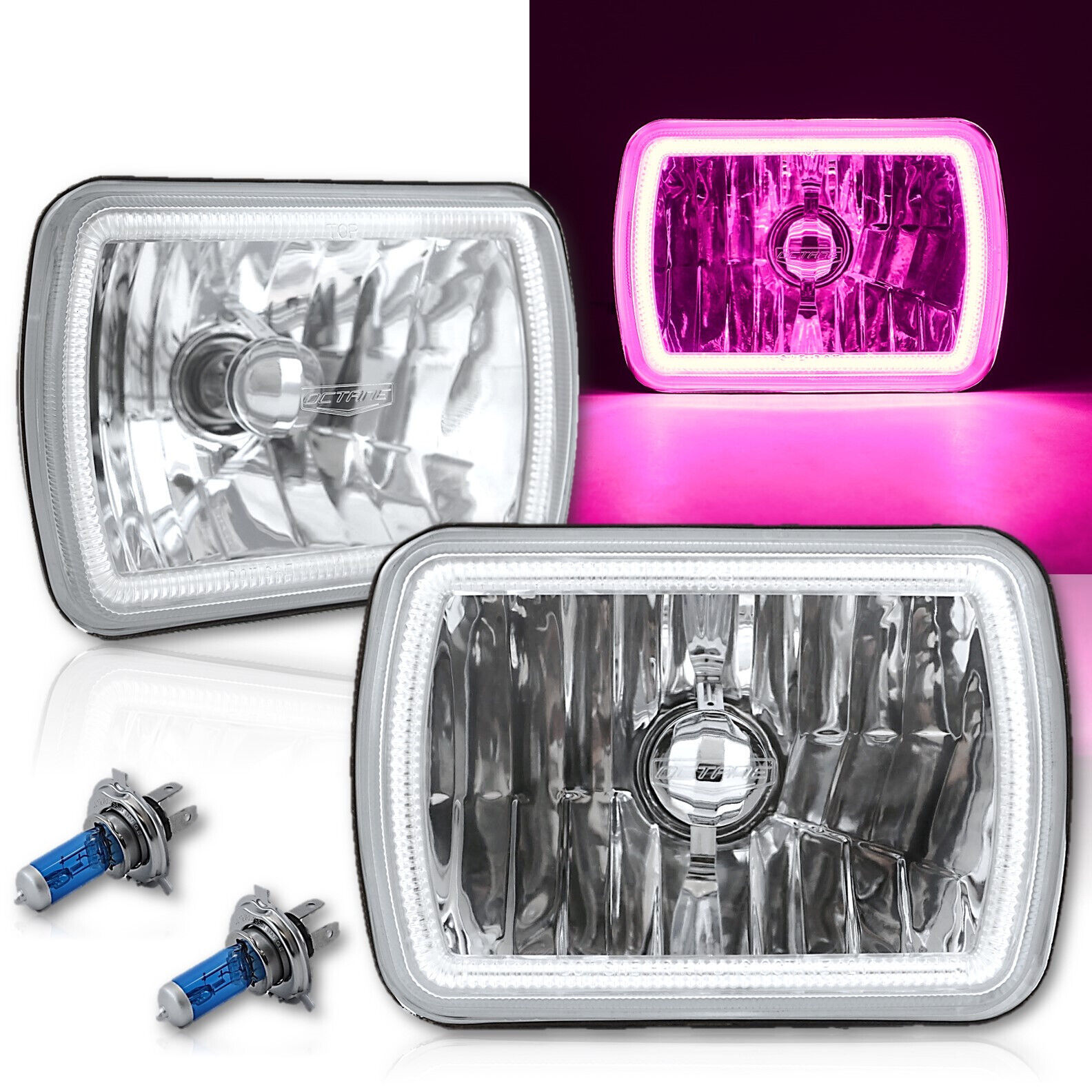 7X6" Square Crystal Halogen Headlamps w/ Pink SMD Halo Rings