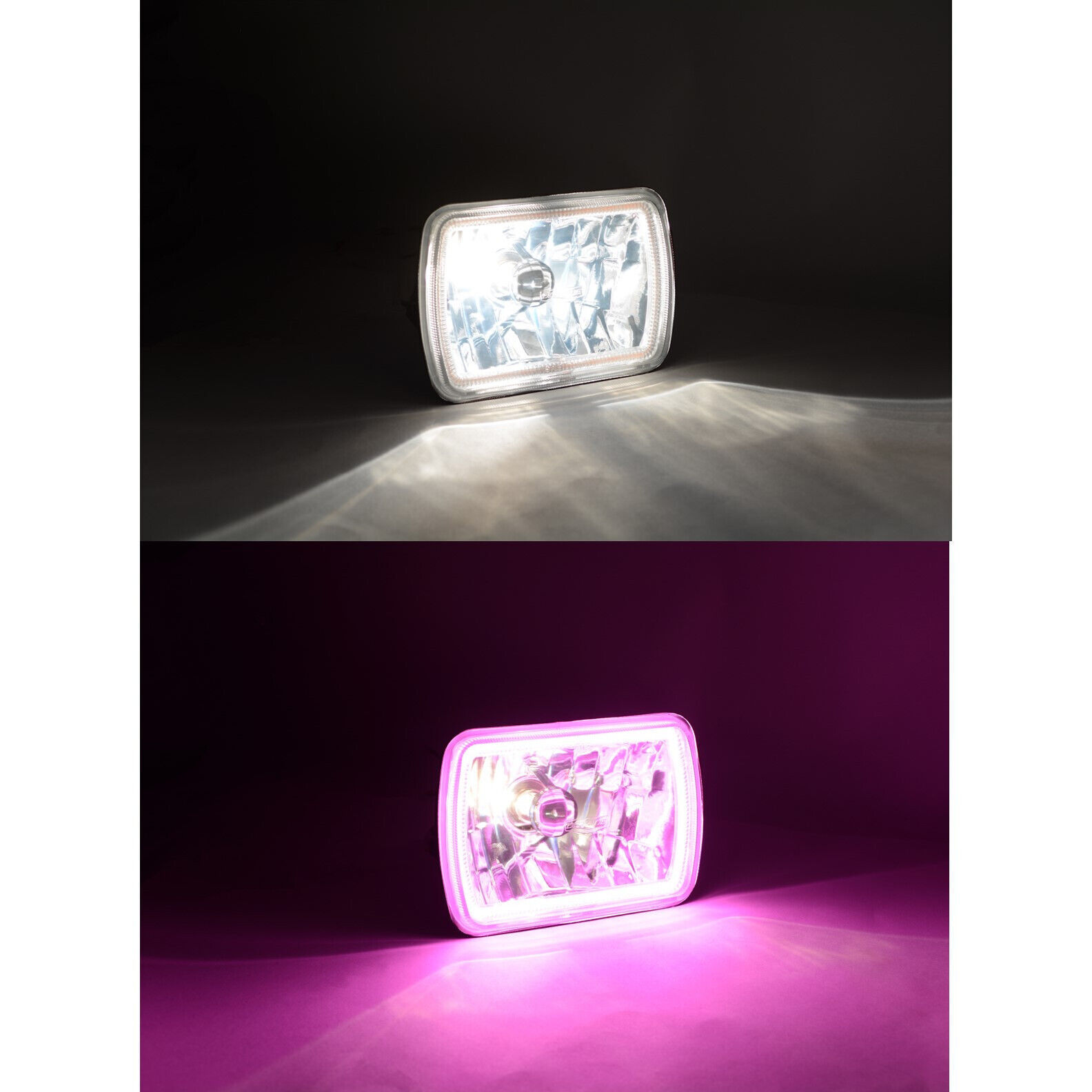 7X6" Pink SMD LED Halo Angel Eye Clear Headlight 55/60W Halogen Light Bulb Pair