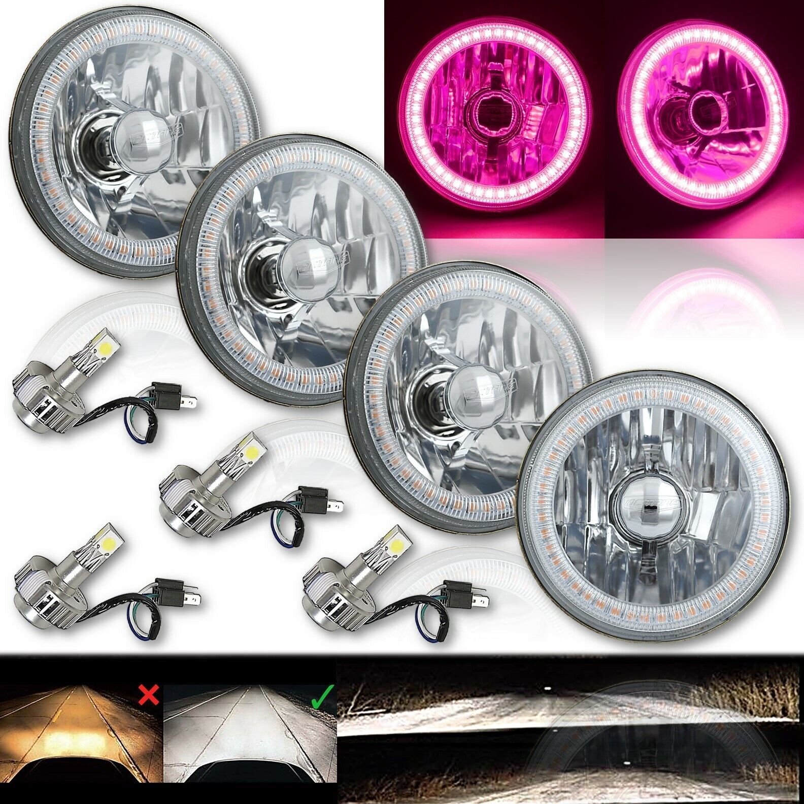5-3/4" Pink SMD LED Halo Angel Eye H4 Headlight w/ 6k LED Light Bulb Set of 4