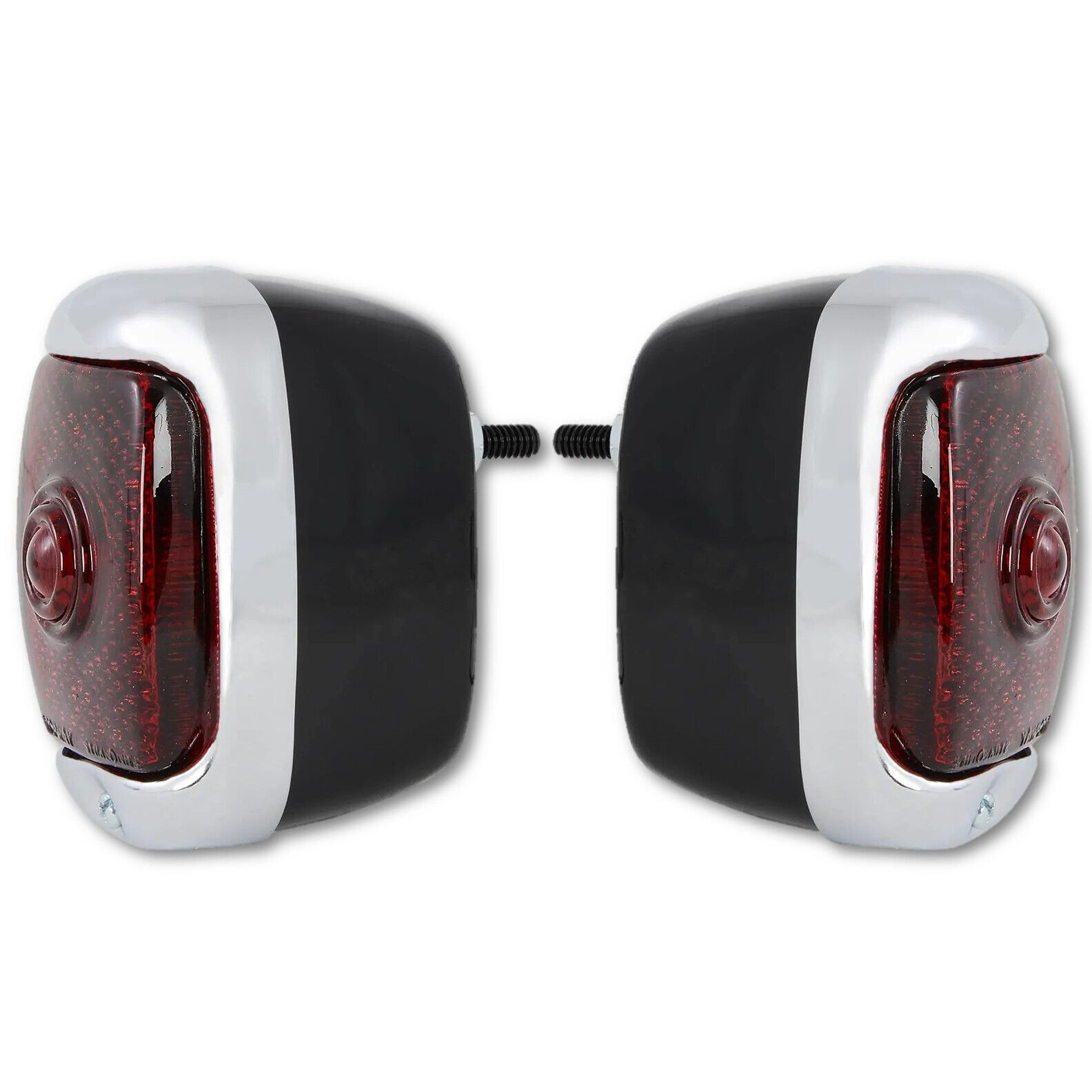 New Pair - 6v Black Chrome Tail Light Assemblies