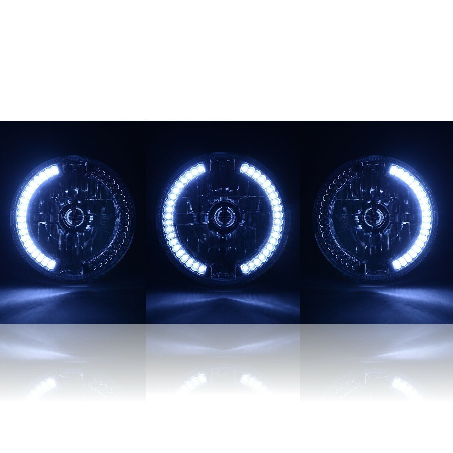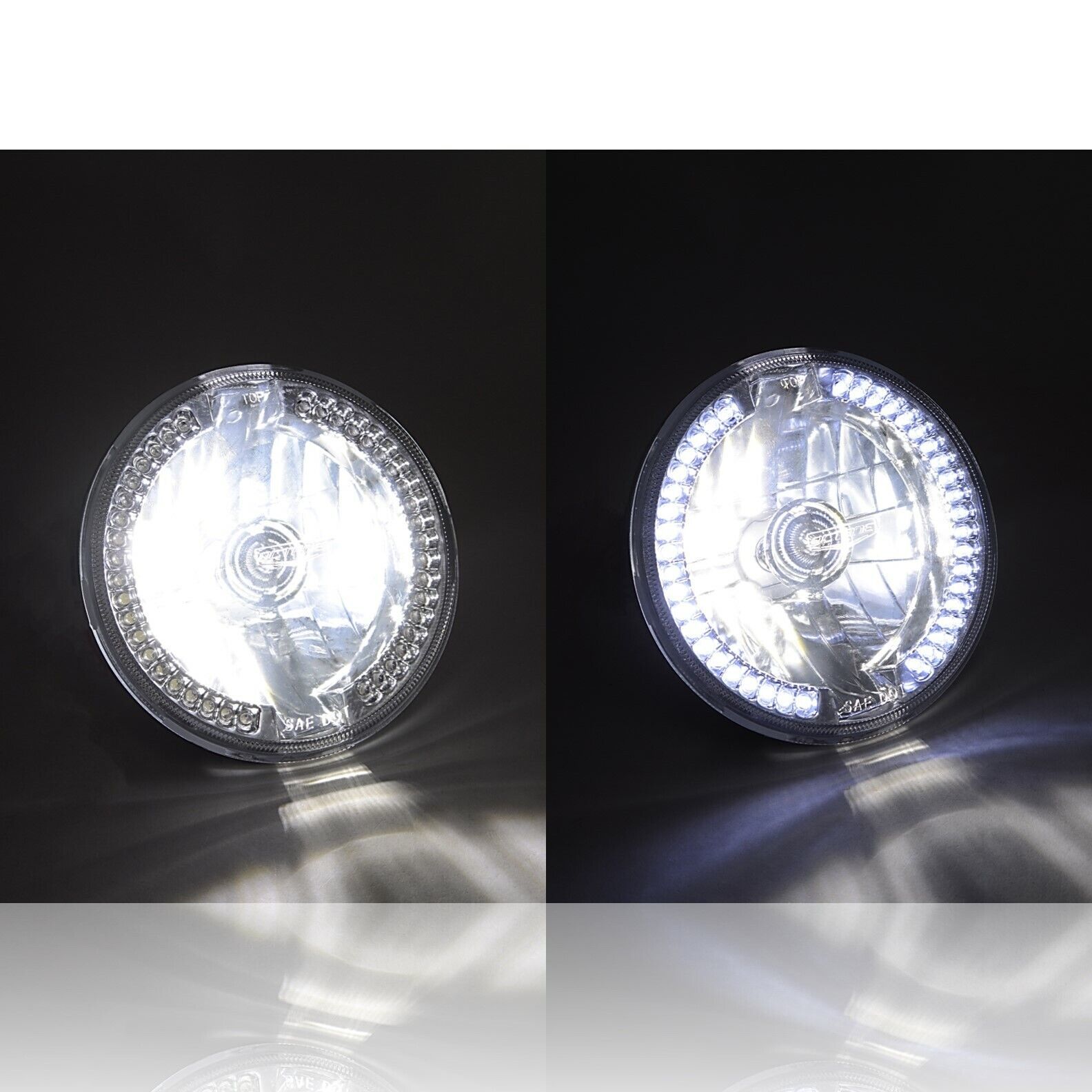 White LED rings can be wired to be daytime running lights, turn signals, or stay on with the headlights