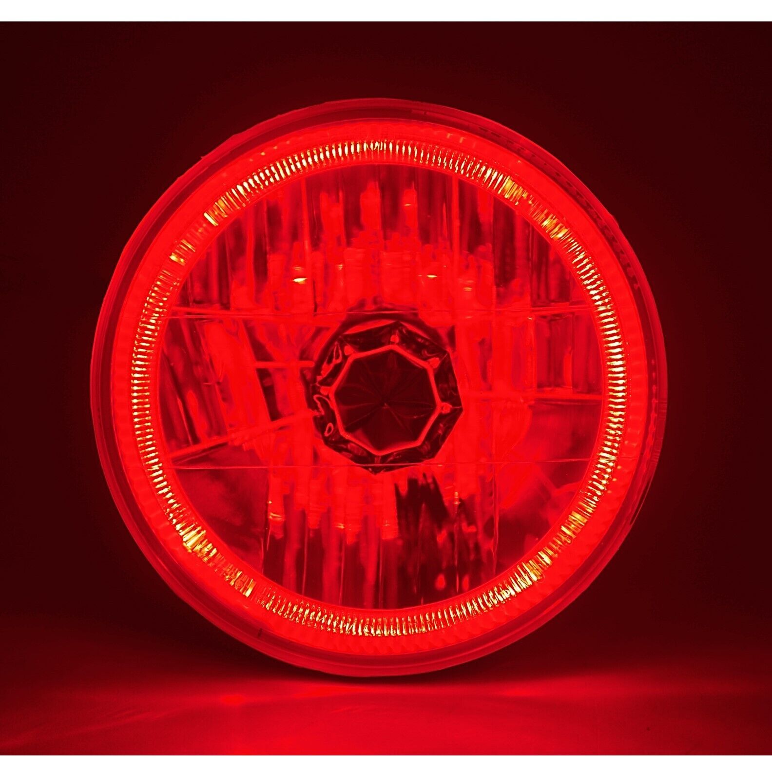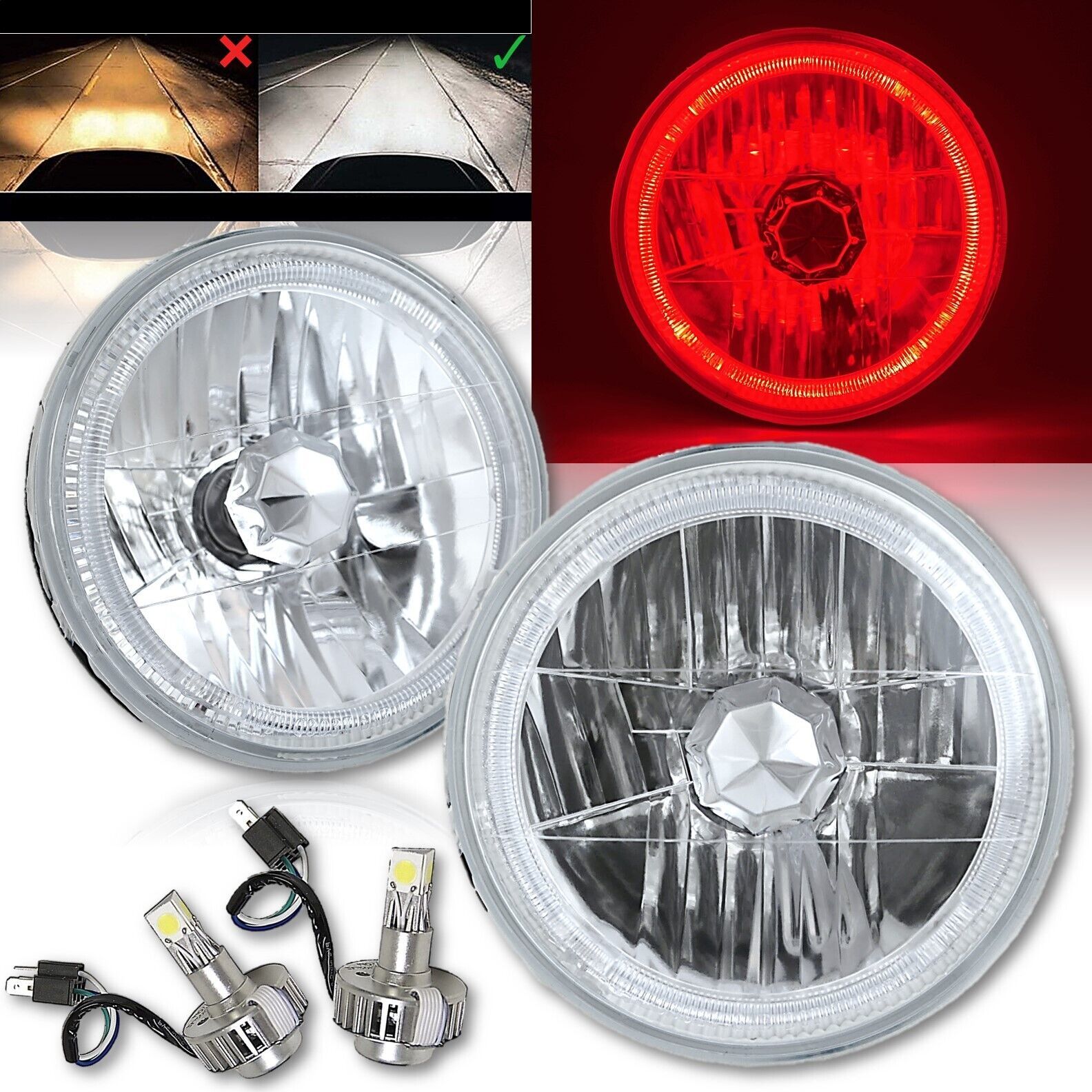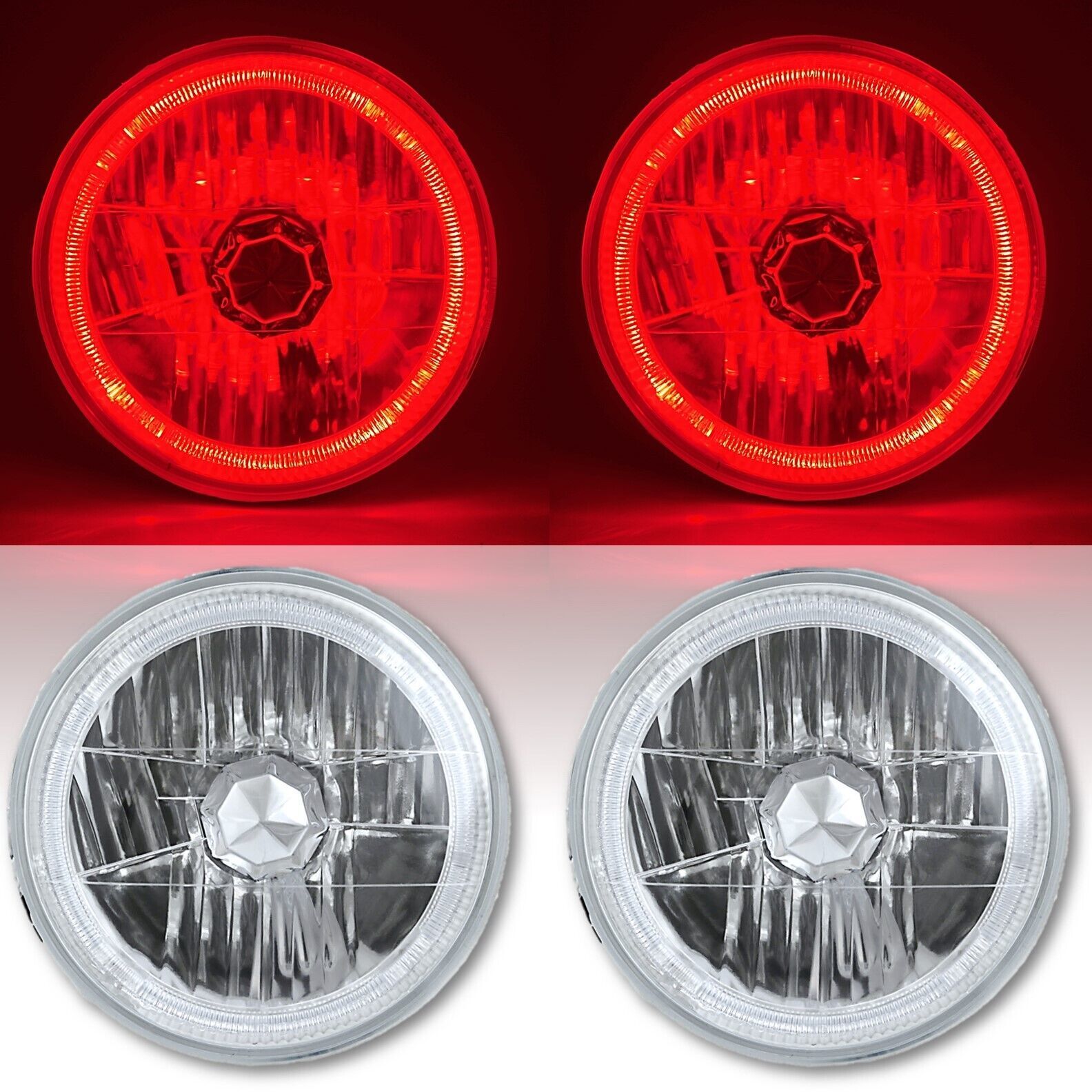 7" Round Crystal H4 Headlights w/ Red Halo Rings