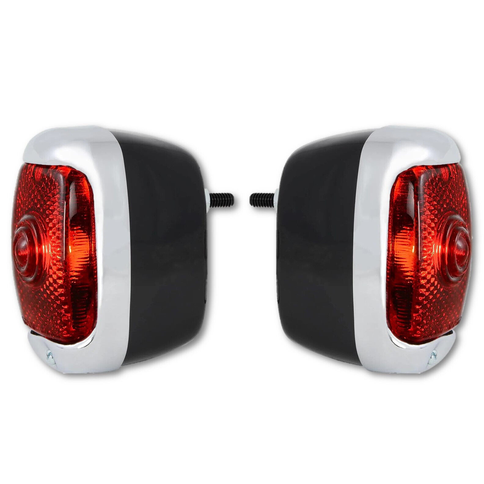 Red Glass Lenses w/ Chrome Bezels & Black Housings |