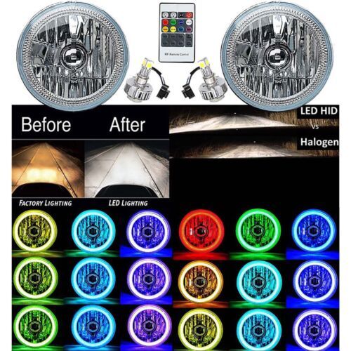 5-3/4" RF RGB COB Color Change Halo Angel Eye Shift Headlamp LED Headlights Pair