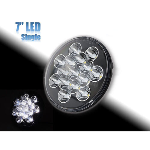 THIS LISTING IS FOR ONE NEW 7 INCH ROUND 12 VOLT HIGH/LOW BEAM LED HEADLIGHT - SUPER BRIGHT 6000K LEDS. THESE ARE EXTREMELY BRIGHT AND LIGHT UP WHITE COMPARED THE STANDARD STOCK YELLOW LIGHT HEADLIGHT BULBS. INCLUDES PLUG AND PLAY WIRING PLUG THAT WILL PLUG DIRECTLY INTO THE STOCK HARNESS.