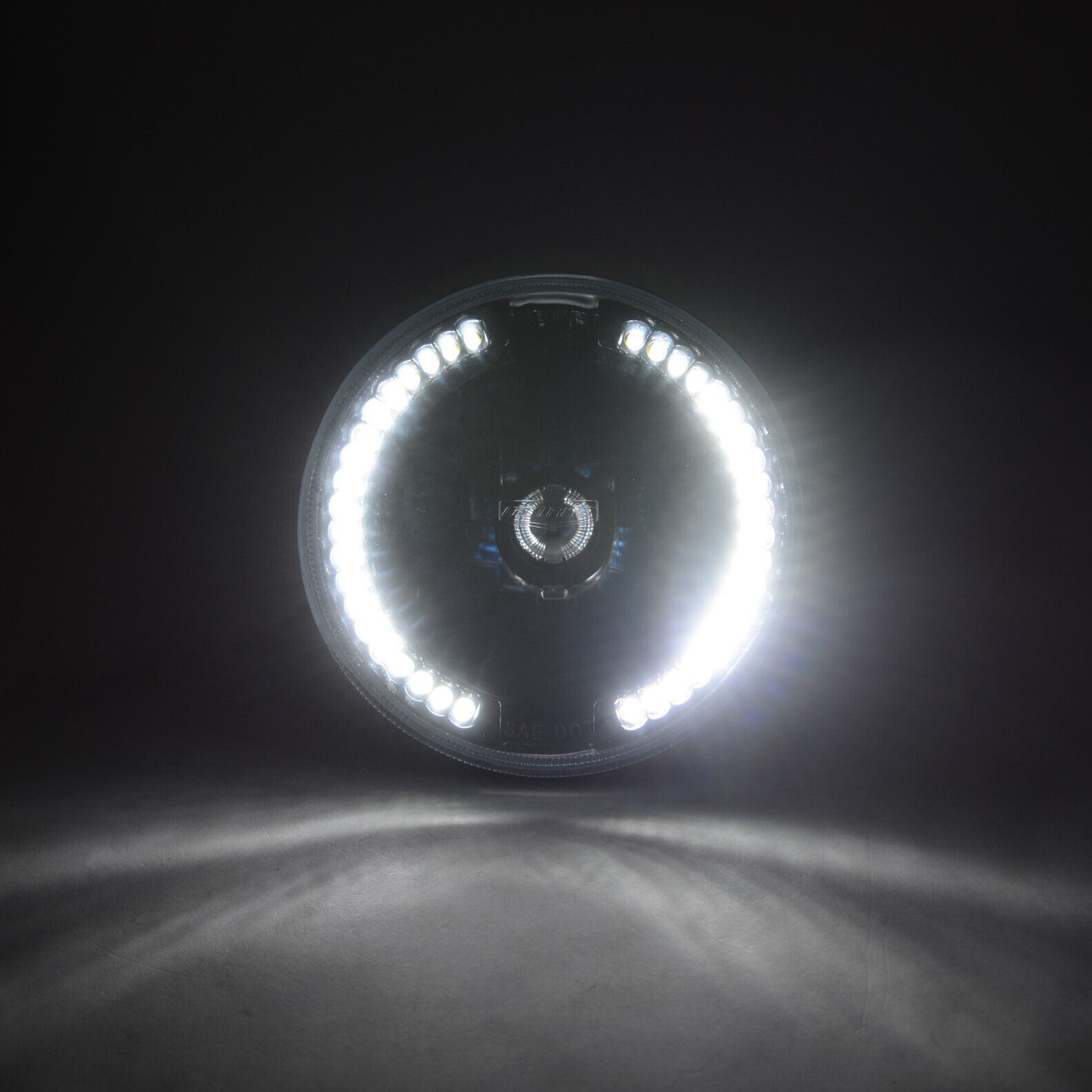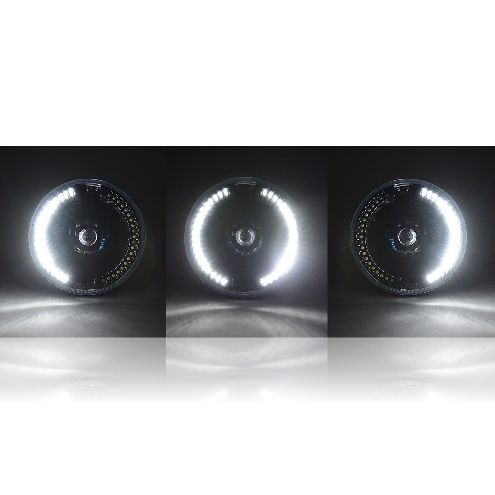 White LED rings can be wired to be daytime running lights, turn signals, or stay on with the headlights