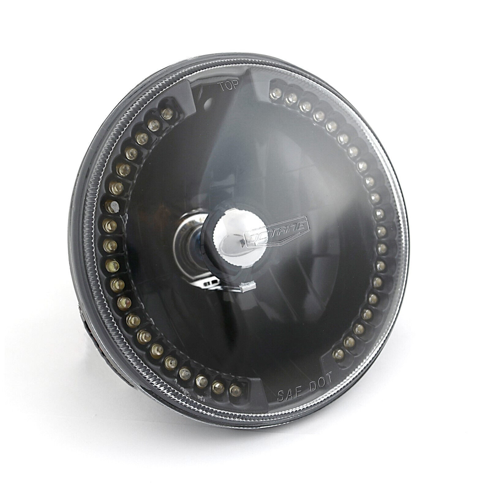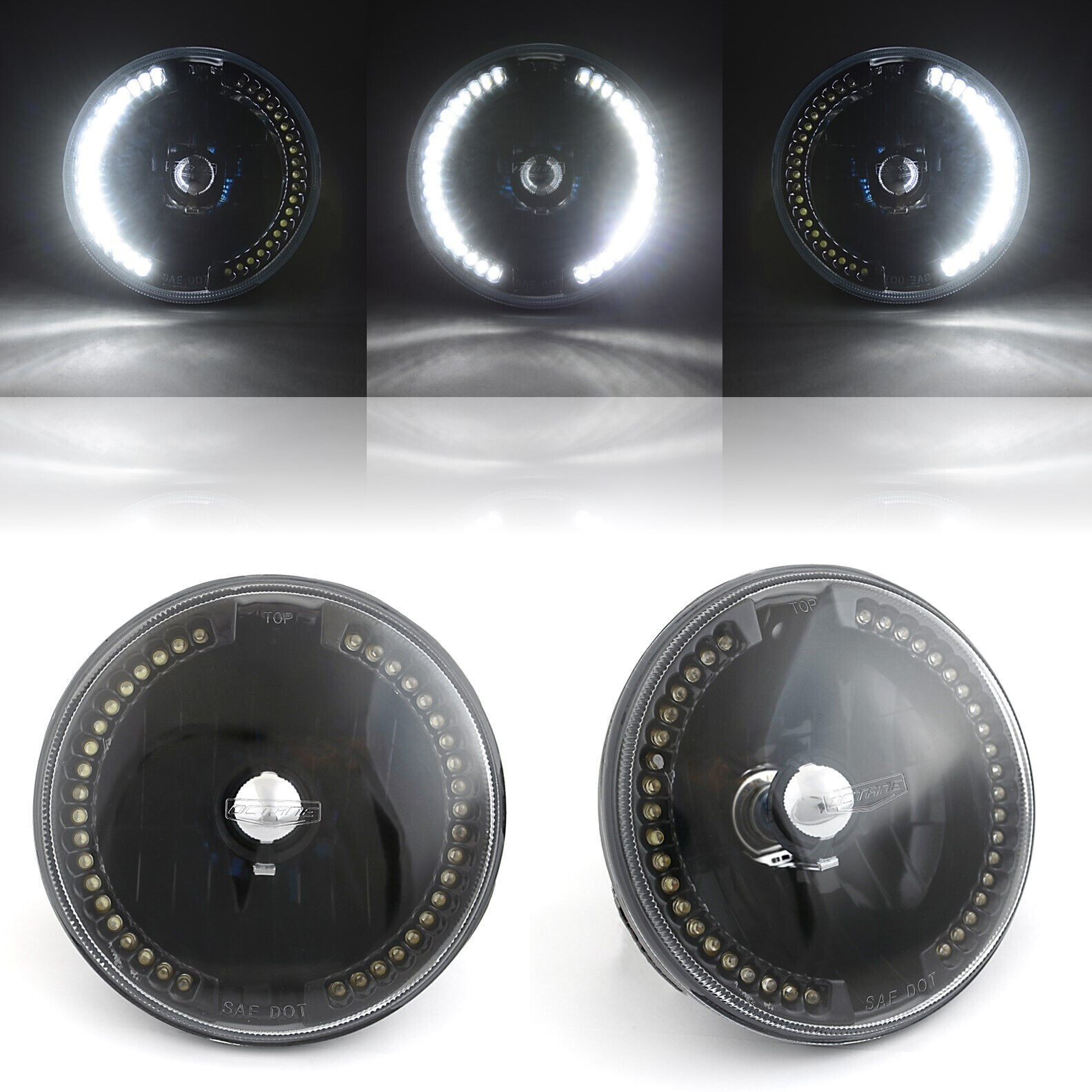 7" Halogen White LED Halo Turn Signal Crystal Black Headlight H4 Light Pair