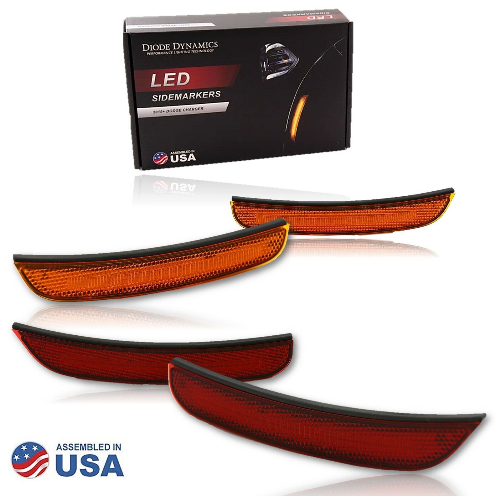 Front & Rear Amber & Red LED Side Marker Lens Set For 2015-2021 Dodge Charger