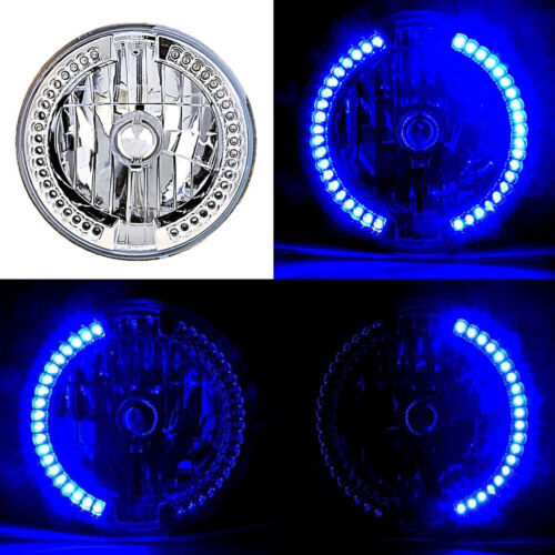 THIS LISTING IS FOR A NEW 7" 12 VOLT MOTORCYCLE CRYSTAL CLEAR GLASS HALOGEN HEADLIGHT BULB WITH DUAL WHITE LEDS THAT CAN BE WIRED TO STAY ON ALL THE TIME AS DAYTIME RUNNING LIGHTS OR CAN BE USED AS TURN SIGNALS. THIS HEADLIGHT COMES WITH A SUPER WHITE XENON 60/55 WATT CLEAR H4 BULB. THESE ARE GLASS HEADLIGHTS. THESE LIGHT UP 50% BRIGHTER AND LIGHT UP WHITE COMPARED THE STANDARD STOCK STYLE INCANDESCENT HEADLIGHT BULBS THAT LIGHT UP YELLOW. INCLUDES 60/55W SUPER WHITE H4 BULBS. THESE HAVE THE ORIGINAL 3 PRONG PLUG DESIGN ON THE BACK SO THEY WILL PLUG RIGHT INTO THE ORIGINAL WIRING HARNESS. LED ACCENT LIGHTS ARE WIRED SEPARATELY. THESE WILL FIT STOCK BUCKETS, BUT IN SOME CASES MINOR MODIFICATION TO THE HEADLIGHT BUCKET AND/OR WIRING MAY BE REQUIRED. THE LEDS ARE POWERED BY SEPARATE 12V POWER AND GROUND WIRES.