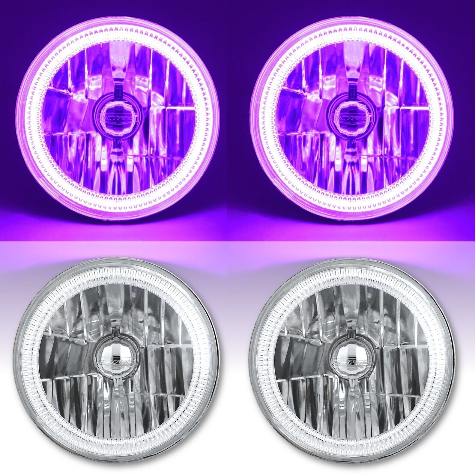 7" COB LED Purple Halo Angel Eye Headlamp Headlight H4 HID 6000K Light Bulb Pair