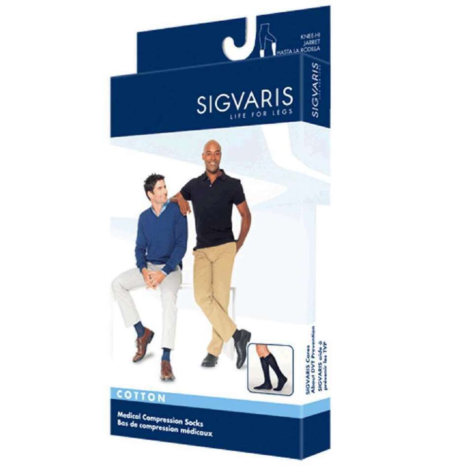 Description : SIGVARIS Men?s Cotton Short Ribbed Calf Highs Grip Top 30-40 Black Large KNEE HIGH COMPRESSION: Sigvaris Essential Cotton compression socks are a comfortable way to protect the feet and are ideal for travel and everyday wear. This incredibly comfortable design helps promote leg health. BEST SUITED FOR: With 30-40 mmHg of support, these closed toe compression socks contain various types of edema, including venous edema, phlebolymphedema, and early stages of lymphedema. They are great for sensitive skin and allergies. DURABLE MATERIAL: The knee high socks provide ease of putting on and taking off. The 50% nylon, 25% Supima cotton, 25% spandex double covered inlay yarns provide comfort against the skin, are durable, and are of the highest quality.