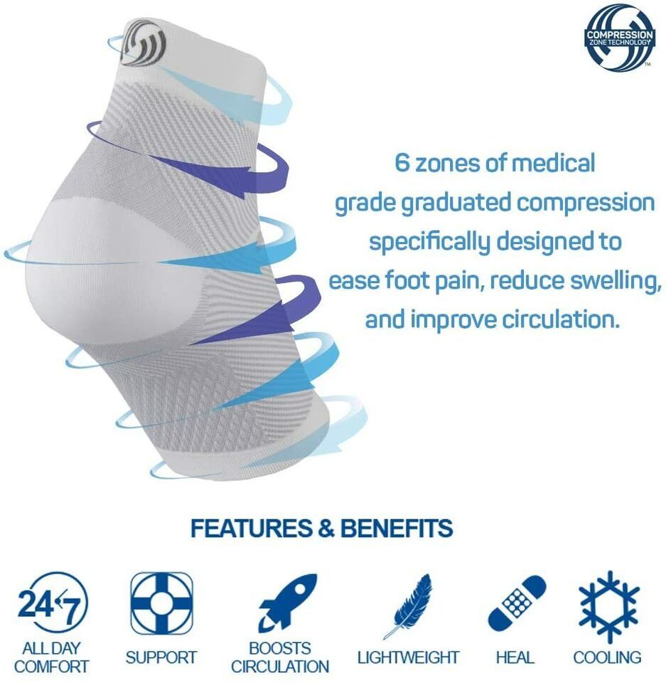 Description : Long awaited relief from painful plantar fasciitis, heel and arch pain. Medical grade graduated compression in an anatomically correct foot sleeve to offer stabilization of the foot to reduce pain, swelling, and cramping by increasing circulation and reducing fatigue. NO MORE SUFFERING! ULTIMATE PROTECTION-The FS6 provides immediate pain relief for Plantar Fasciitis, heel pain and arch pain by continuously stretching the Plantar Fascia to avoid further damage prevent a reoccurrence of Plantar Fasciitis. DESIGNED TO FIT-FS6 is designed specifically to fit your foot shape. It has six zones of graduated compression to promote circulation, reduce impact vibration boost recovery. The FS6 helps provide the same support during workout or while you rest. QUALITY BREATHABLE/ANTI-ODOR?FS6 is made of quality, moisture-wicking fabric which allows the sleeve to breath during movement. Our braces help eliminate sweat buildup under the sock to provide a cool, fresh workout. COMFORT SUPPORT?FS6's light-weight design provides the support tendons joints need to stay healthy offers a more wearable option. Unlike bulky splints, neoprene or copper braces Velcro, FS6 guarantees relief in a moveable, breathable fabric. \r\n