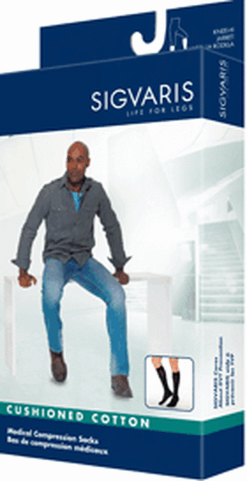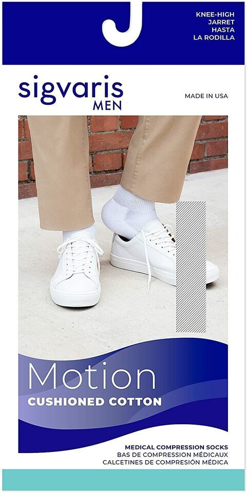 KNEE HIGH COMPRESSION: Sigvaris Motion Cushioned Cotton compression socks are a comfortable way to protect the feet and are ideal for everyday wear. This incredibly comfortable design helps promote leg health and provides relief from a range of symptoms.