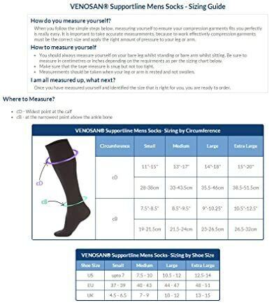 Description : Venosan Supportline men's 18-22 mmHg knee high support socks are available in navy, black, brown, white and tan.