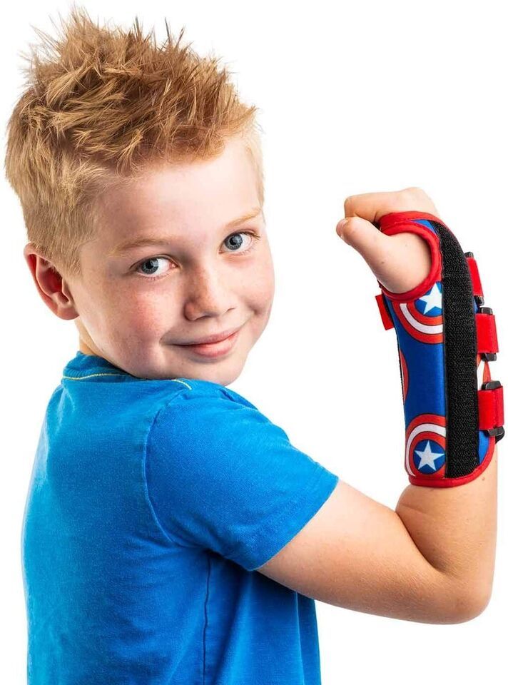Description : Marvels Captain America Wrist Brace w/Foam Lining, Palmer Stays Right Hand YOUTH REMOVABLE STAYS: Aluminum palmer stays support and assist in immobilization of the wrist 3 ADJUSTABLE STRAPS: Three adjustable and trimmable straps allow for a more personalized fit and helps with easy on/off application ANATOMICAL DESIGN: Right or left wrist specific MARVEL THEME: Marvel design makes this unique and fun to wear; choose the Captain America or Spider-Man design EXPANSION PANELS: Panels aids in freedom of movement