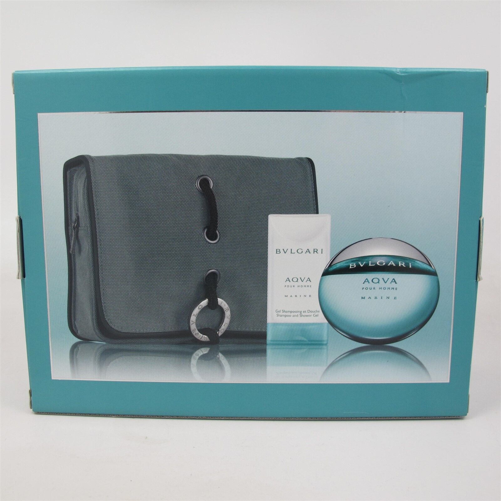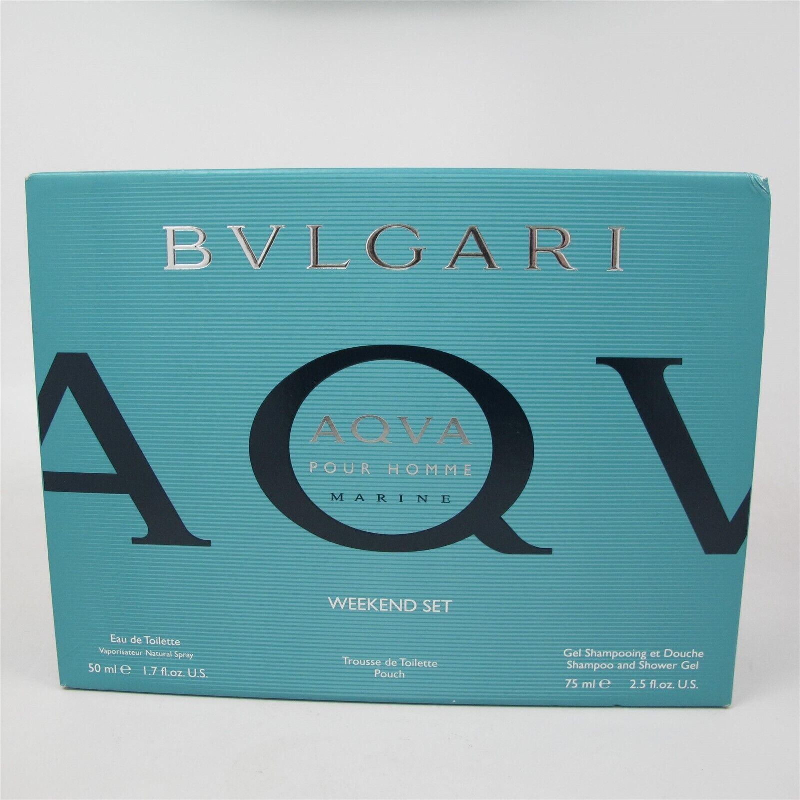 AQVA Pour Homme MARINE by Bvlgari 3 Pcs Set: 1.7 oz EDT Spray, Gel & Pouch NIB