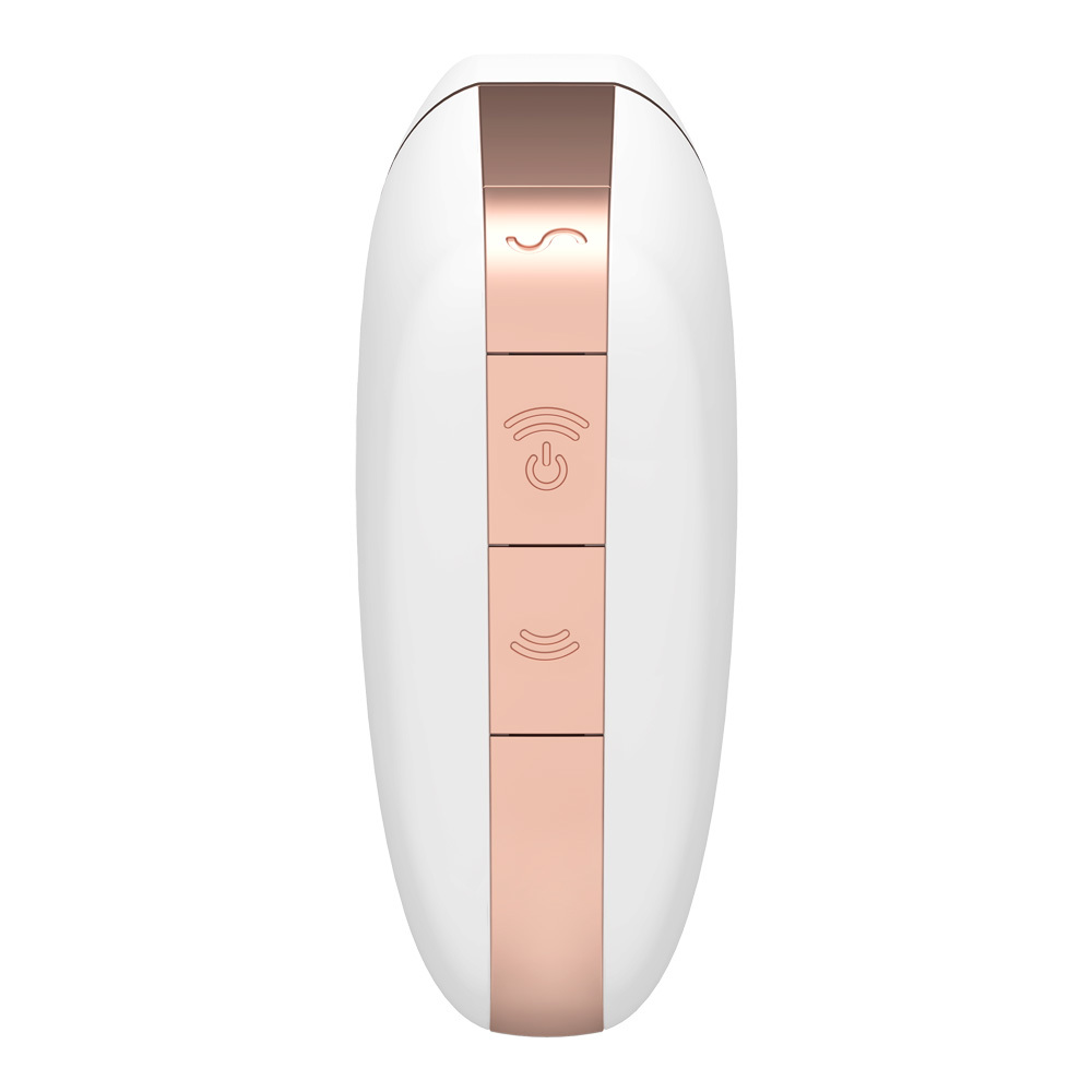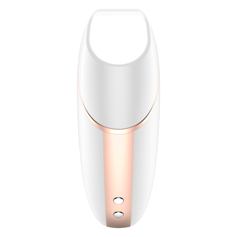 Our Love Triangle combines proven Air-Pulse Technology with deep vibrations and a smooth silicone head. Its practical cap ensures hygienic and discreet storage at all times, even on the go. Compatible with the free Satisfyer App - Available on iOS and Android. Simultaneous stimulation of the clitoris using pressure waves and vibrations. Thanks to its waterproof (IPX7) finish, this toy can be used safely in water and is easy to clean.