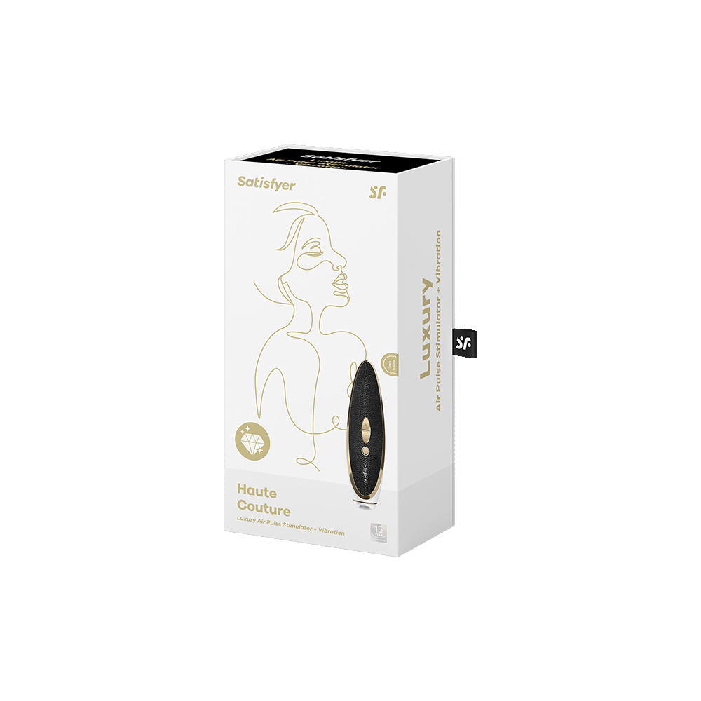 Do you love a touch of extravagance โ and don't want to do without luxury with your sexual wellness devices? The Satisfyer Haute Couture from our Luxury Collection not only looks high quality and elegant: The pressure wave vibrator pampers your clitoris with a sensual blend of pulsating pressure waves and intense vibrations. Its round application head made of smooth liquid silicone gently surrounds the clitoris stimulating you with a caressing touch. The ergonomic handle with fine details in real leather and metal also fits comfortably in your hand.