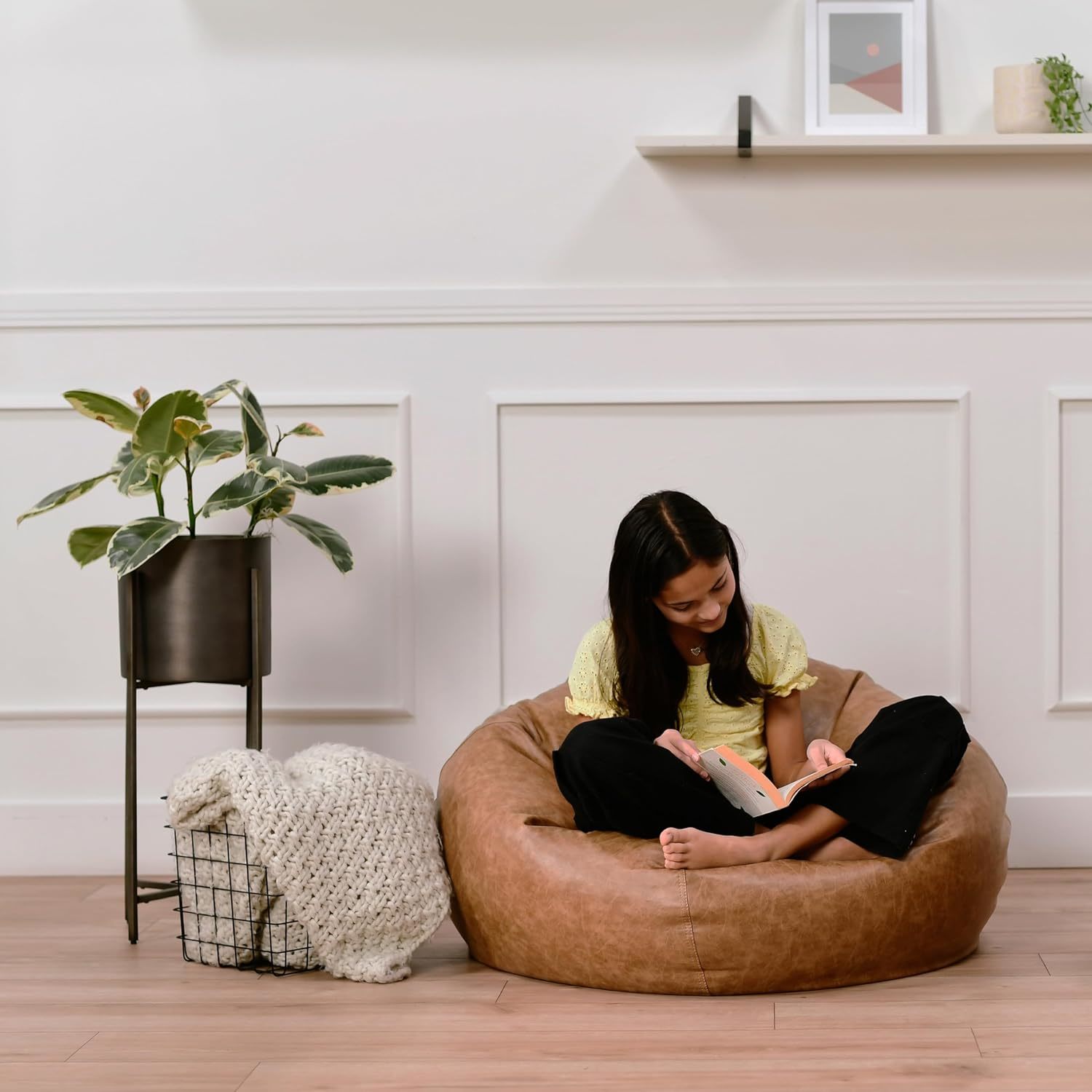 Faux Leather RUSTIC BEAN BAG ? high-quality, commercial-grade 35" Western-Inspired Bean Bags are the perfect seat to kick your feet up and relax; sits low to the ground DISTRESSED LEATHER ? the unique, distressed faux leather is the perfect accent for the rustic modern farmhouse to the mid-century modern game room; designed for homes, common areas or Montessori classrooms COMFORT ? filled with foam beads that form to body contours for a comfortable, supportive seat; replacement beads sold separately (item # 10487-N) BUILT TO LAST ? soft, leather-like cover is easy to spot clean and features double-stitched seams and two safety zippers to prevent accidental access to the beads SAFE FOR YOUR SPACE ? GREENGUARD [GOLD] Certified for low emissions contributing to cleaner indoor air and complies with flammability regulations