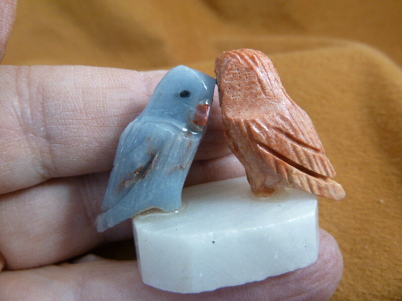 (Y-BIR-OW-112) pair of Owls red + blue gray bird gemstone STONE gem Peru owls