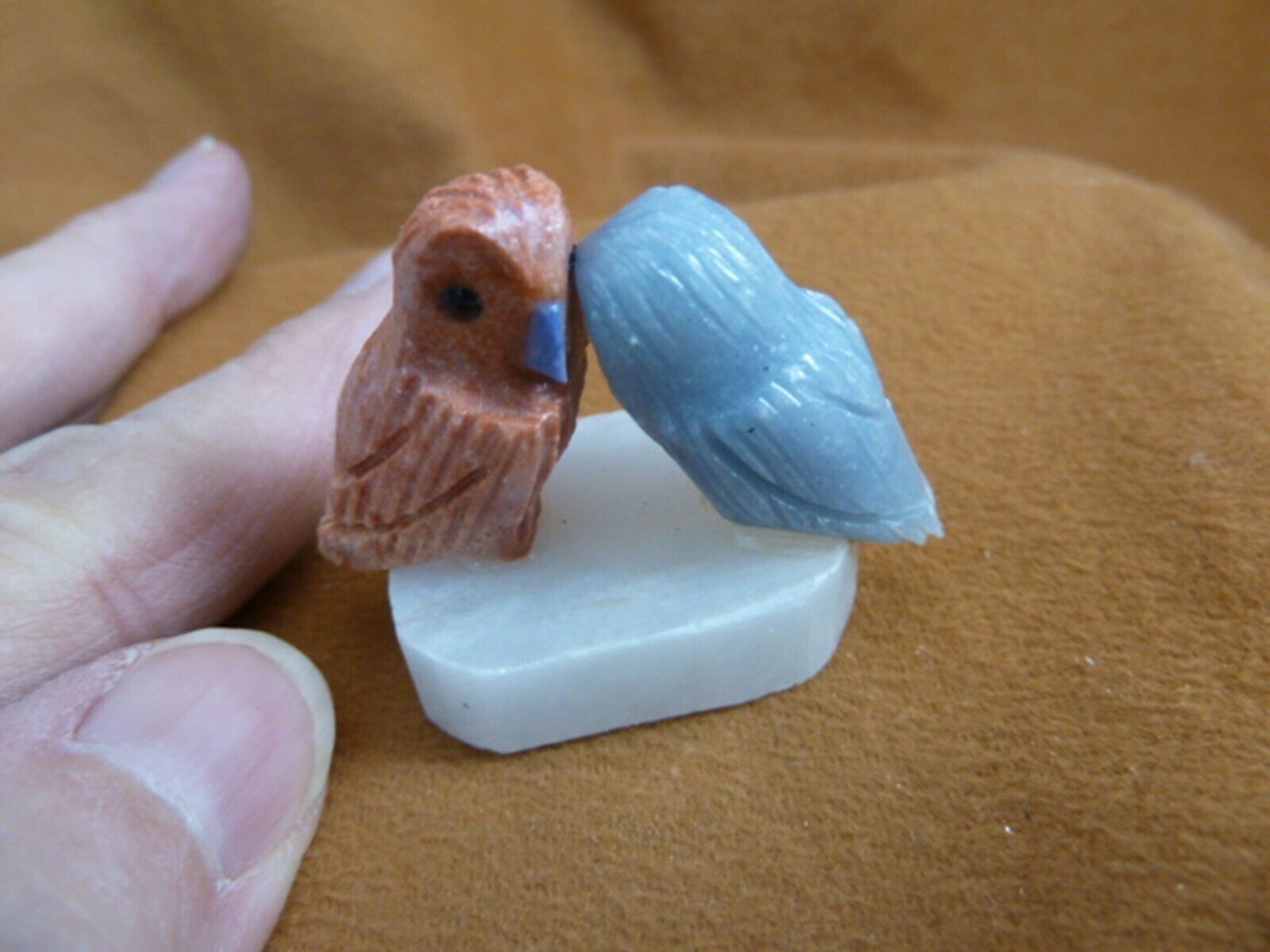 (#Y-BIR-OW-112) Excellent carving of a pair of OWLS hand crafted in NATURAL GEMSTONES on base, 1-1/2" tall x 2" wide x 3/4" deep.