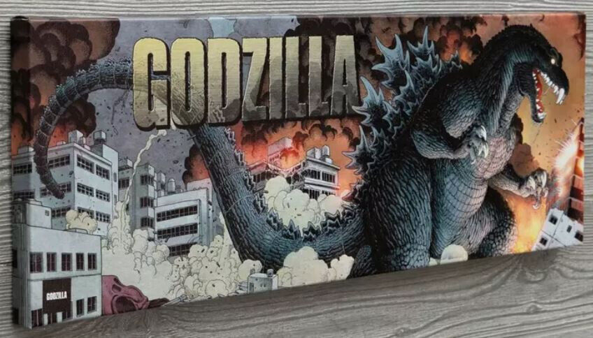 This Godzilla Canvas Wall Decor Wooden Framed Wall Art is new.