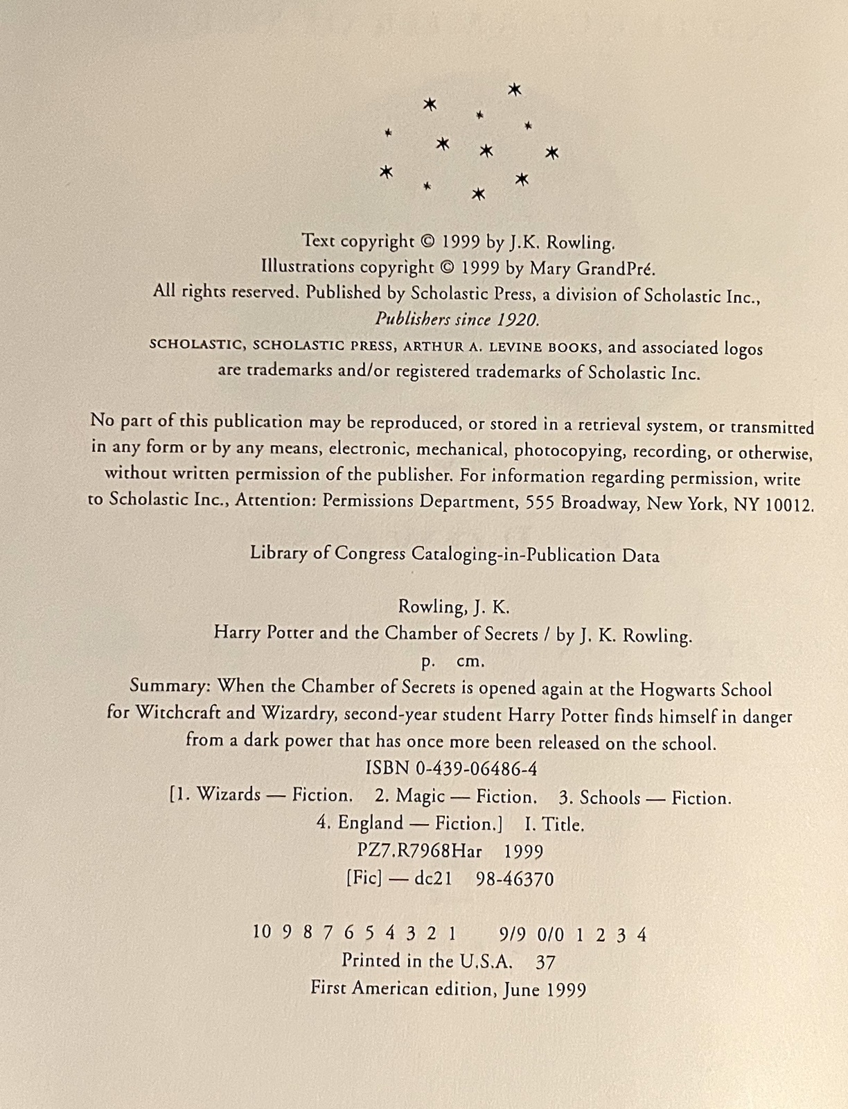 1999 Harry Potter and the Chamber of Secrets first edition