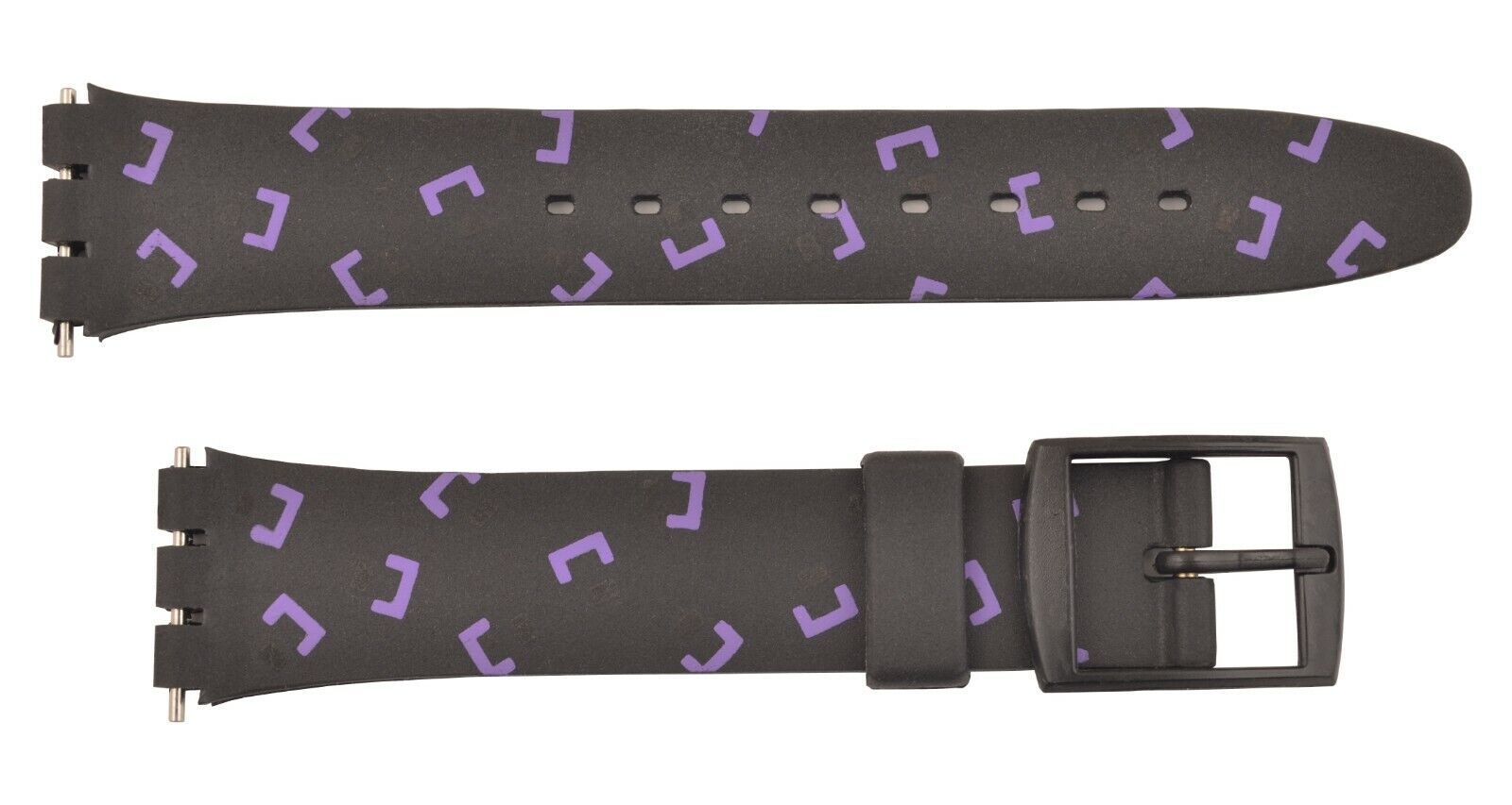 Swatch Replacement 17mm Plastic Watch Band Strap Black/Purple Design