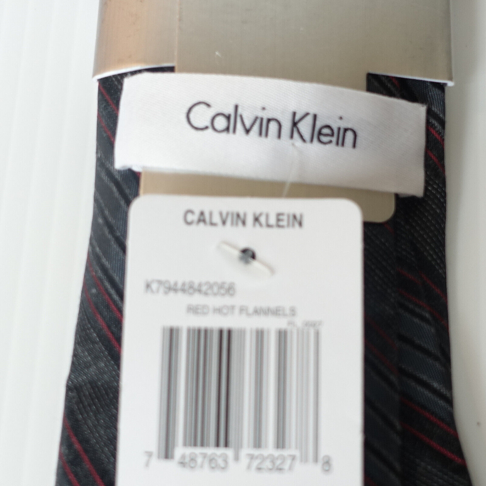 CALVIN KLEIN Gray Red Hot Flannels Stripe Silk Blend Slim Tie