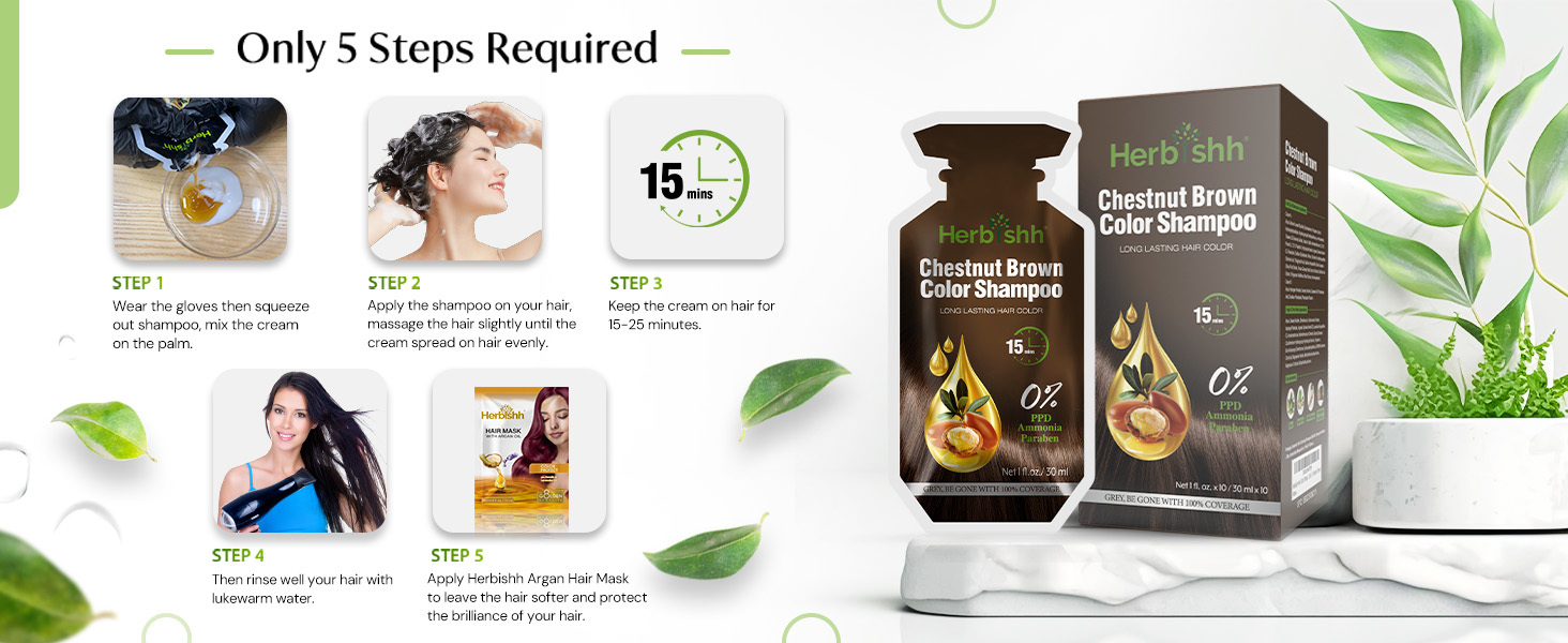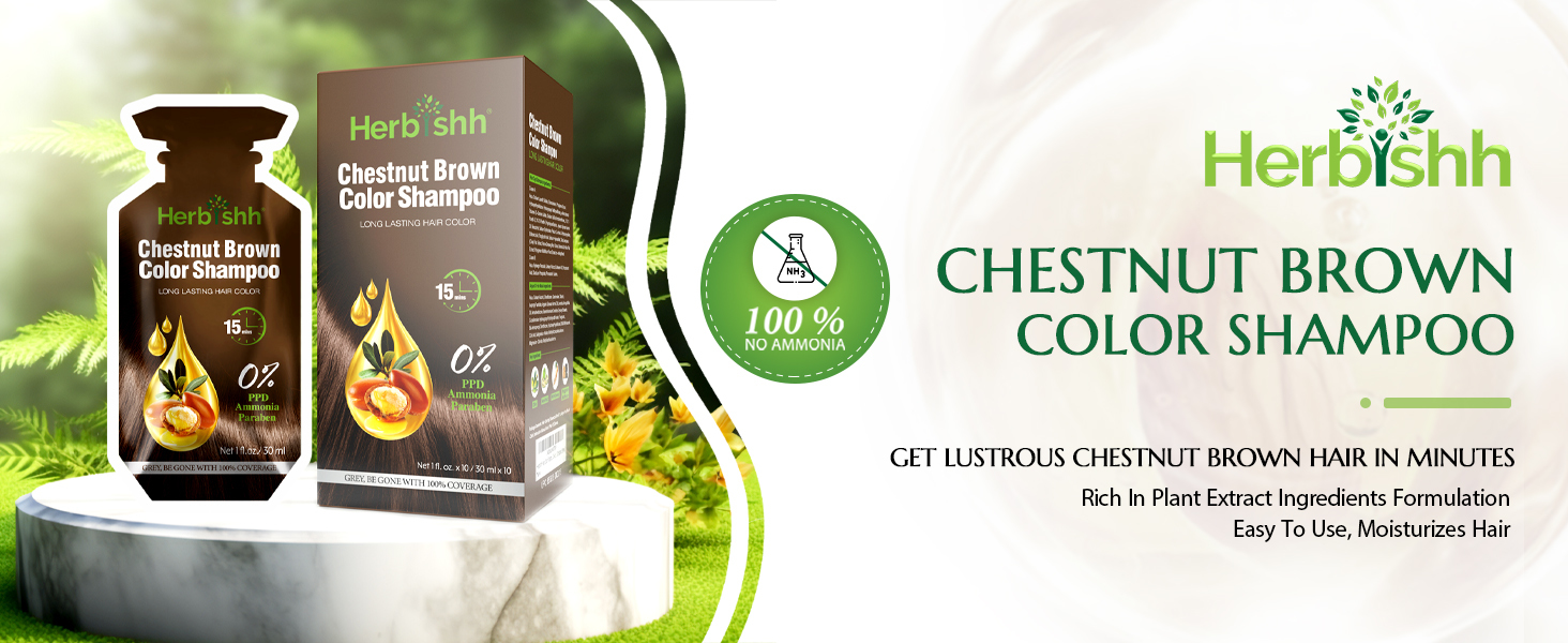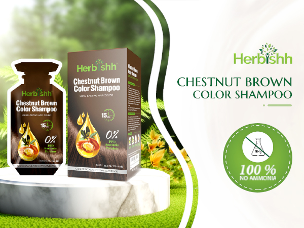 Herbishh Hair Colour Dye Shampoo 10 Sachet PPD Free Travel Size - Chestnut Brown