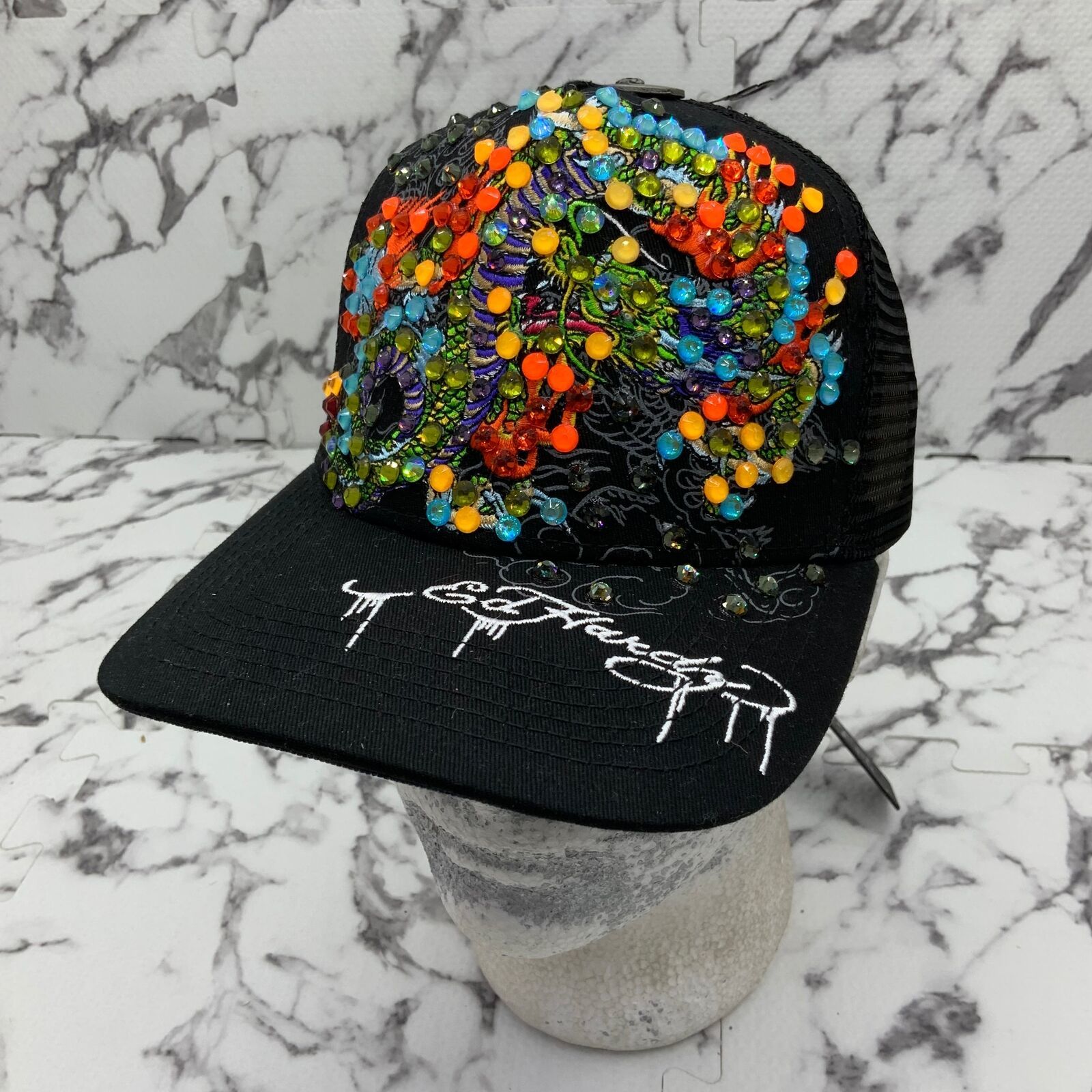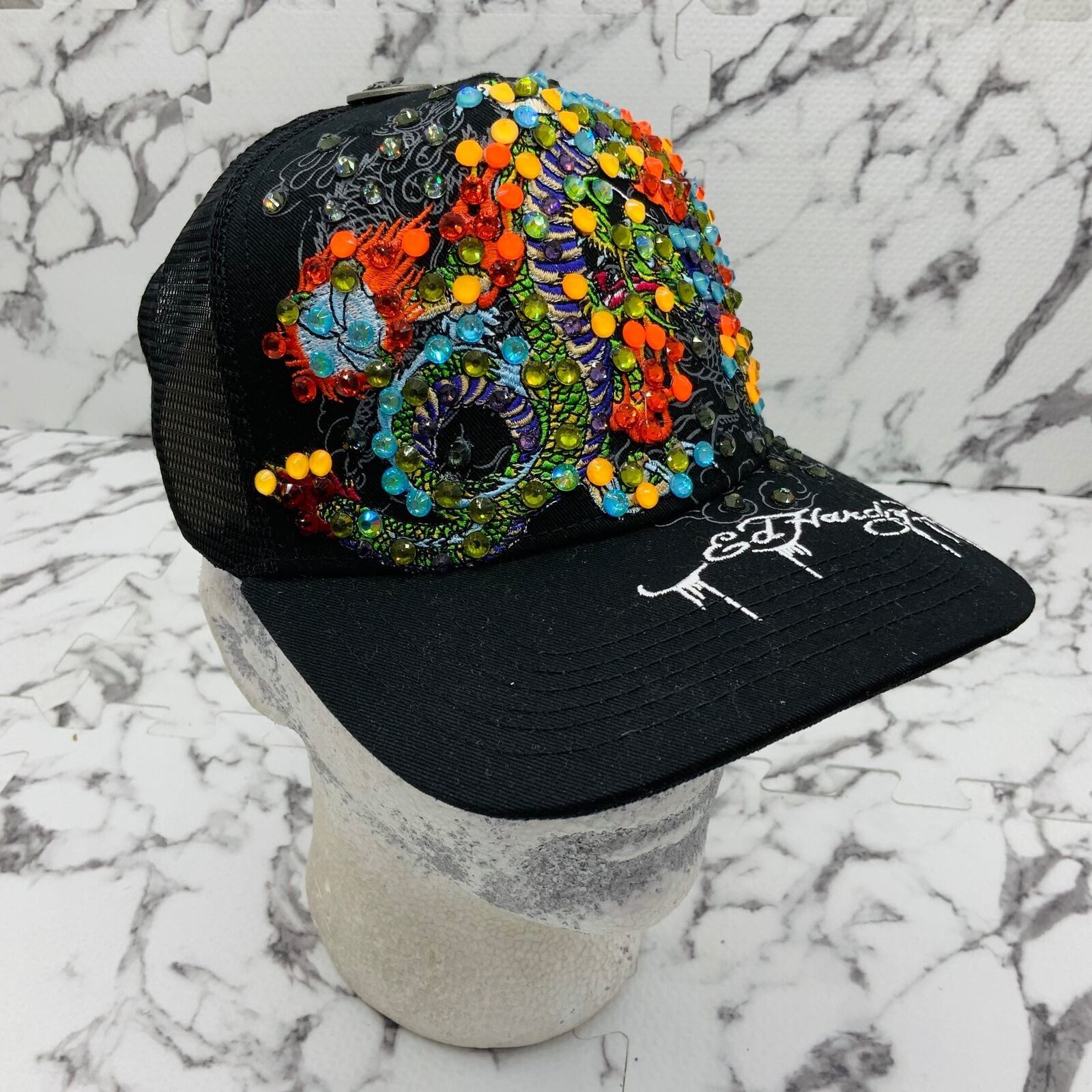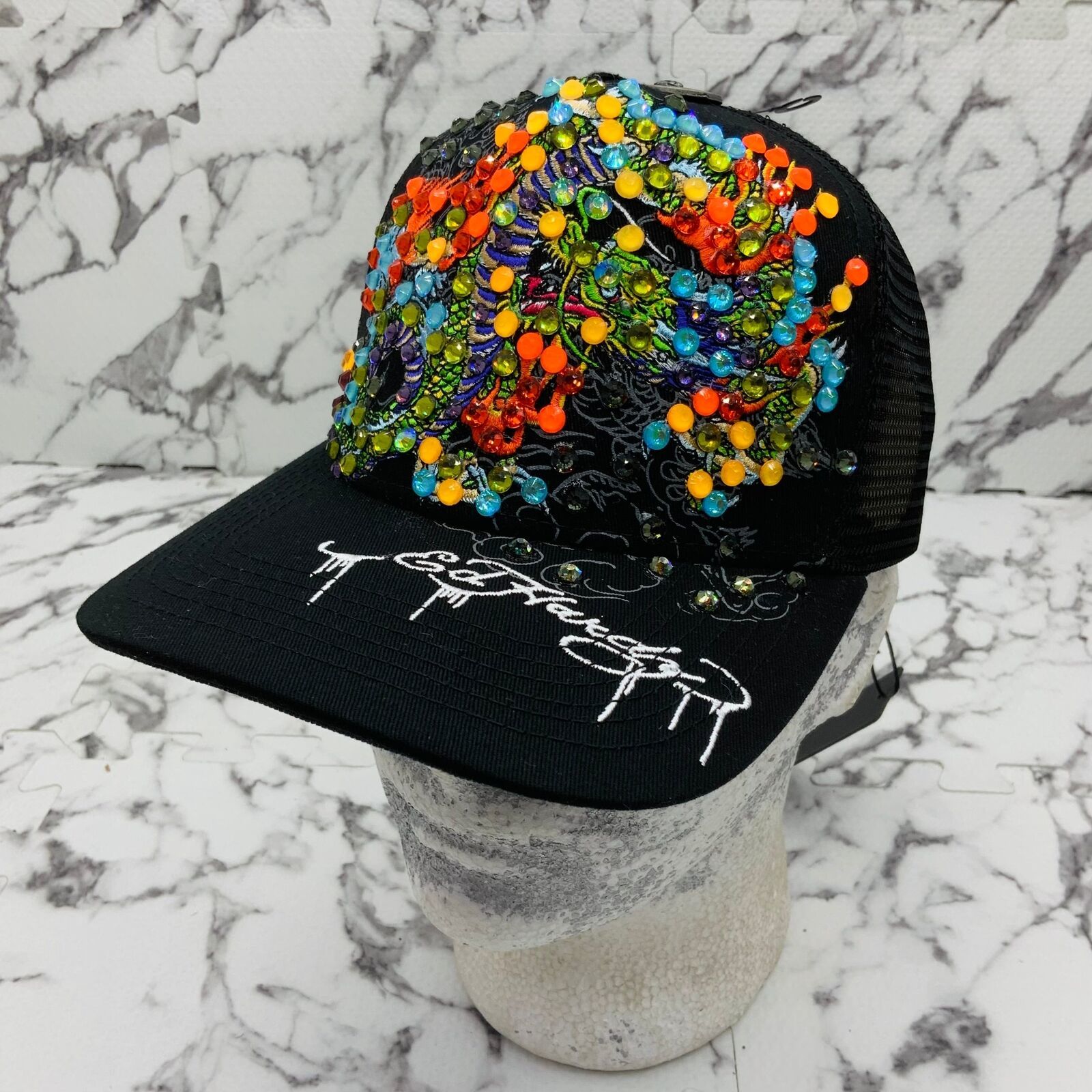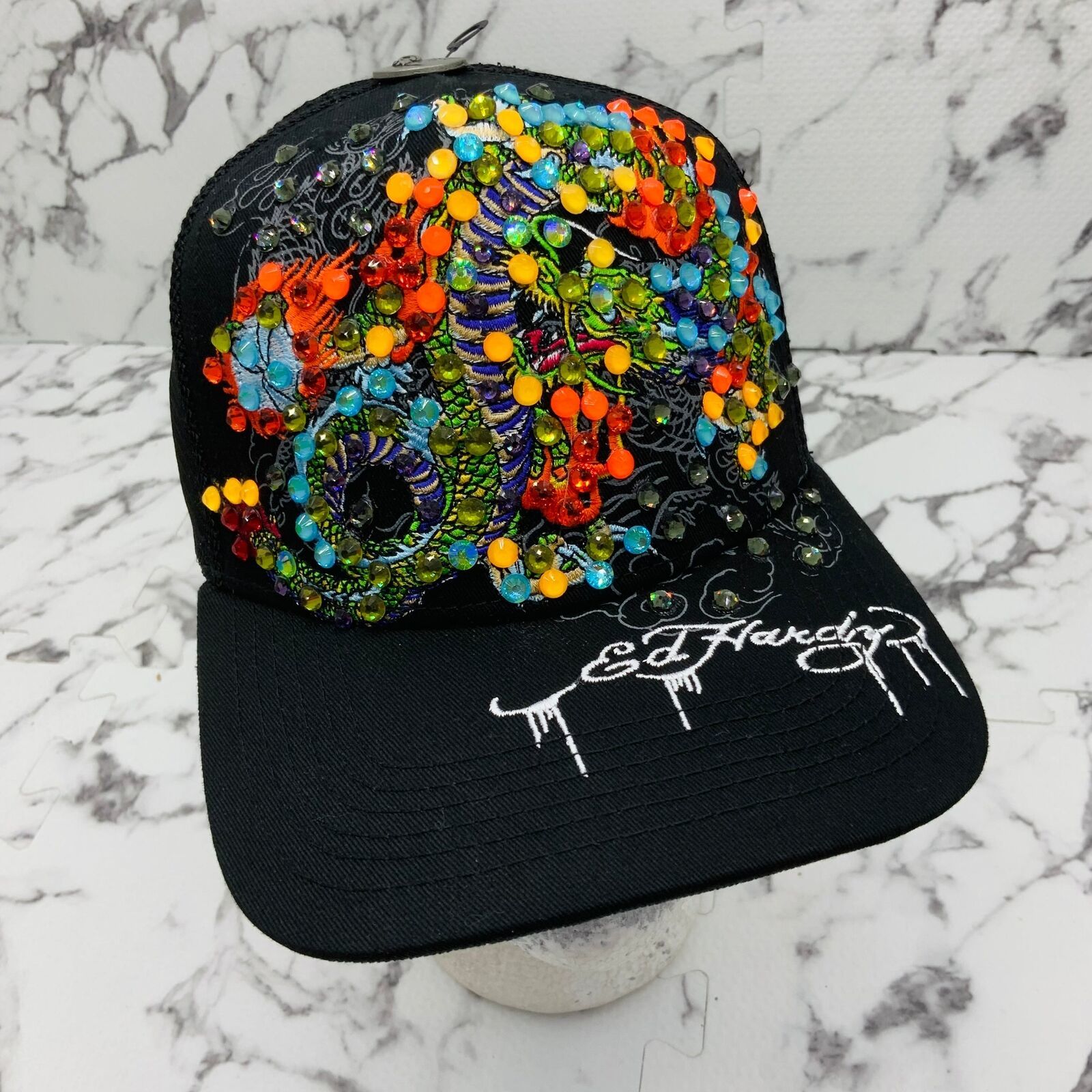Men's Ed Hardy Dragons Black | Multicolor Rhinestone Trucker Hat NWT