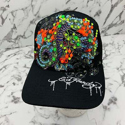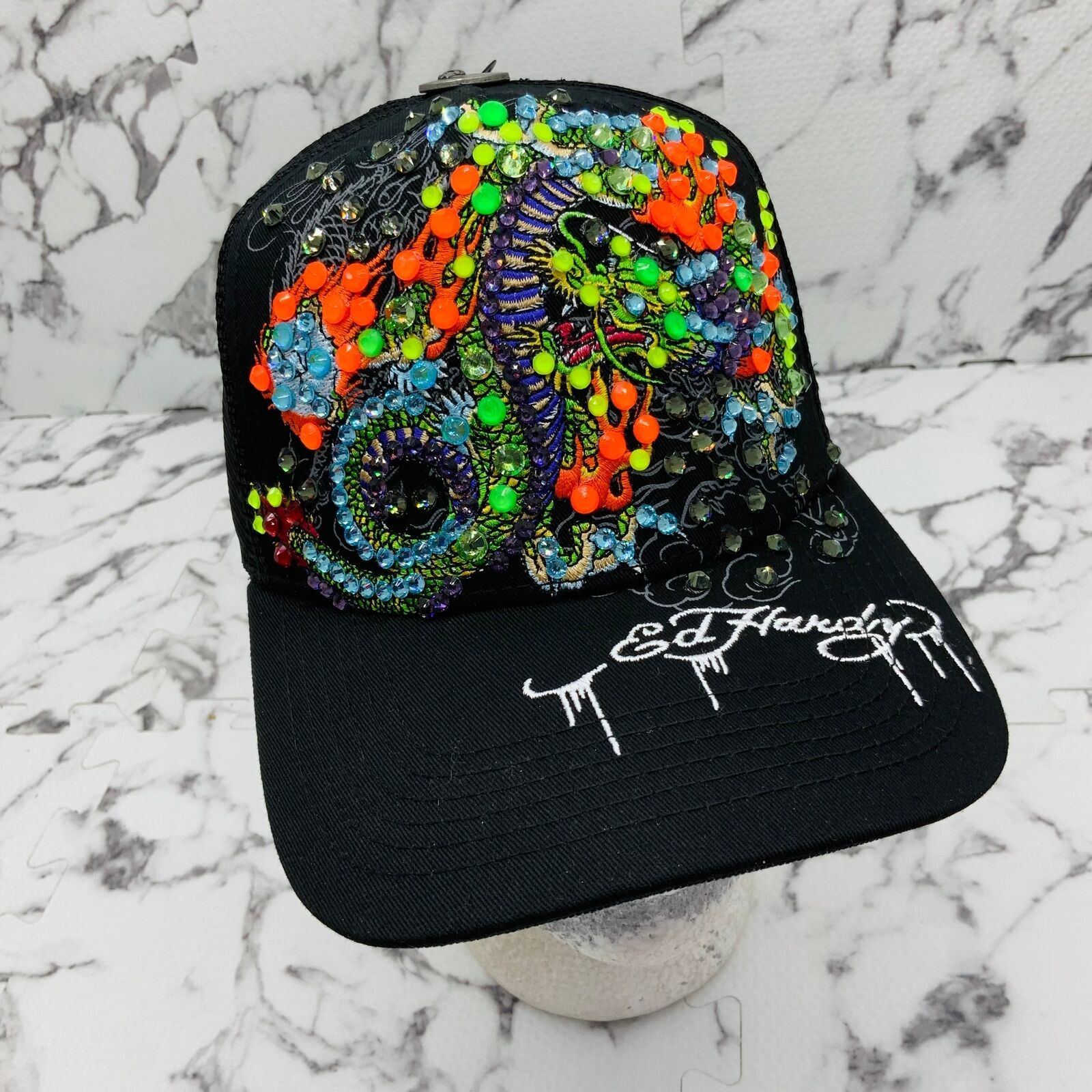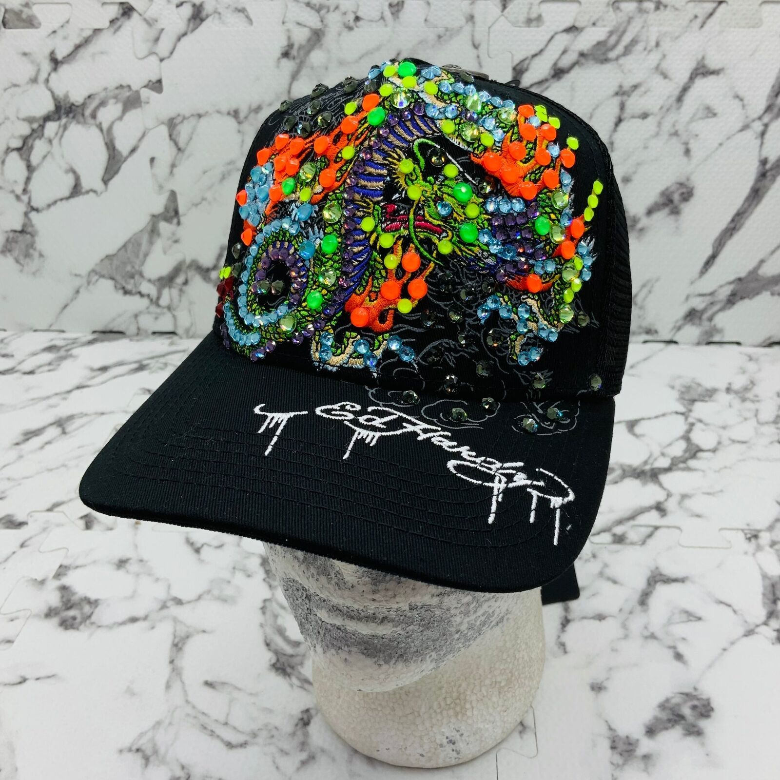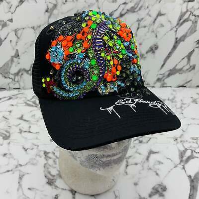 Men's Ed Hardy Dragons Black | Multicolor Rhinestone Trucker Hat NWT