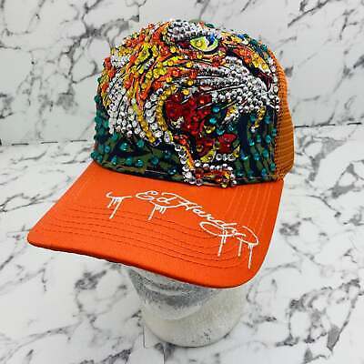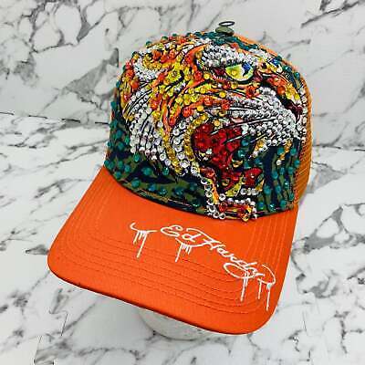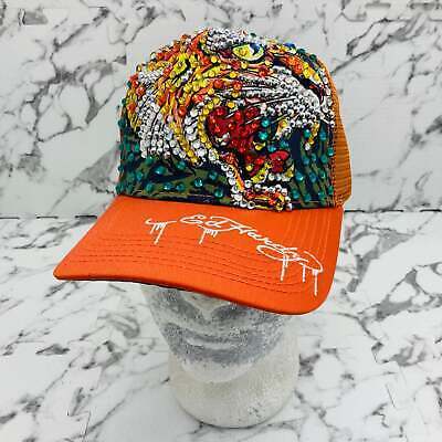 Men's Ed Hardy Tiger Orange | Multicolor Rhinestone Trucker Hat NWT
