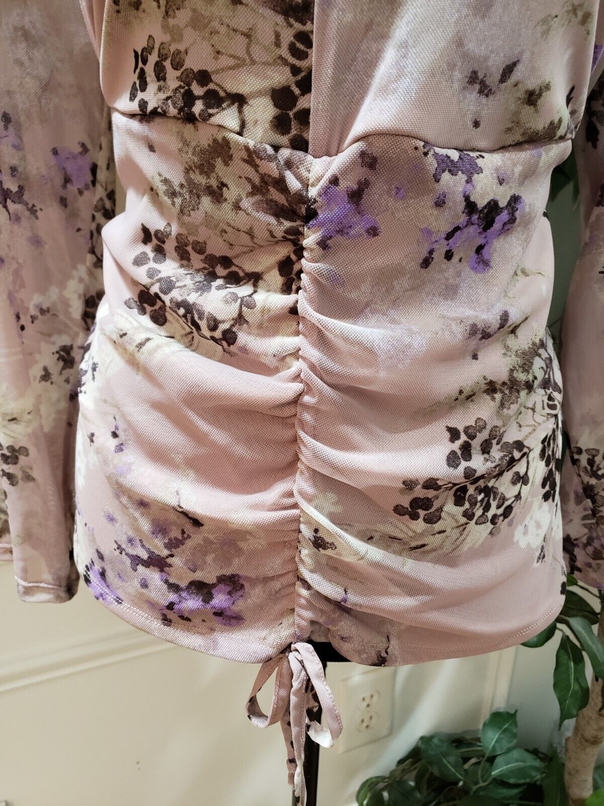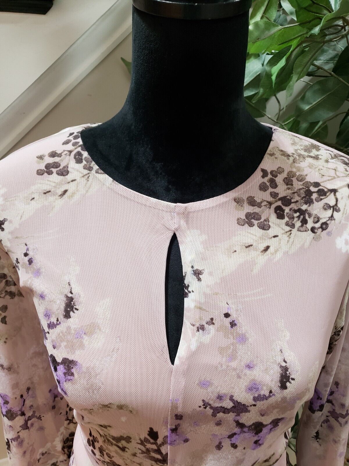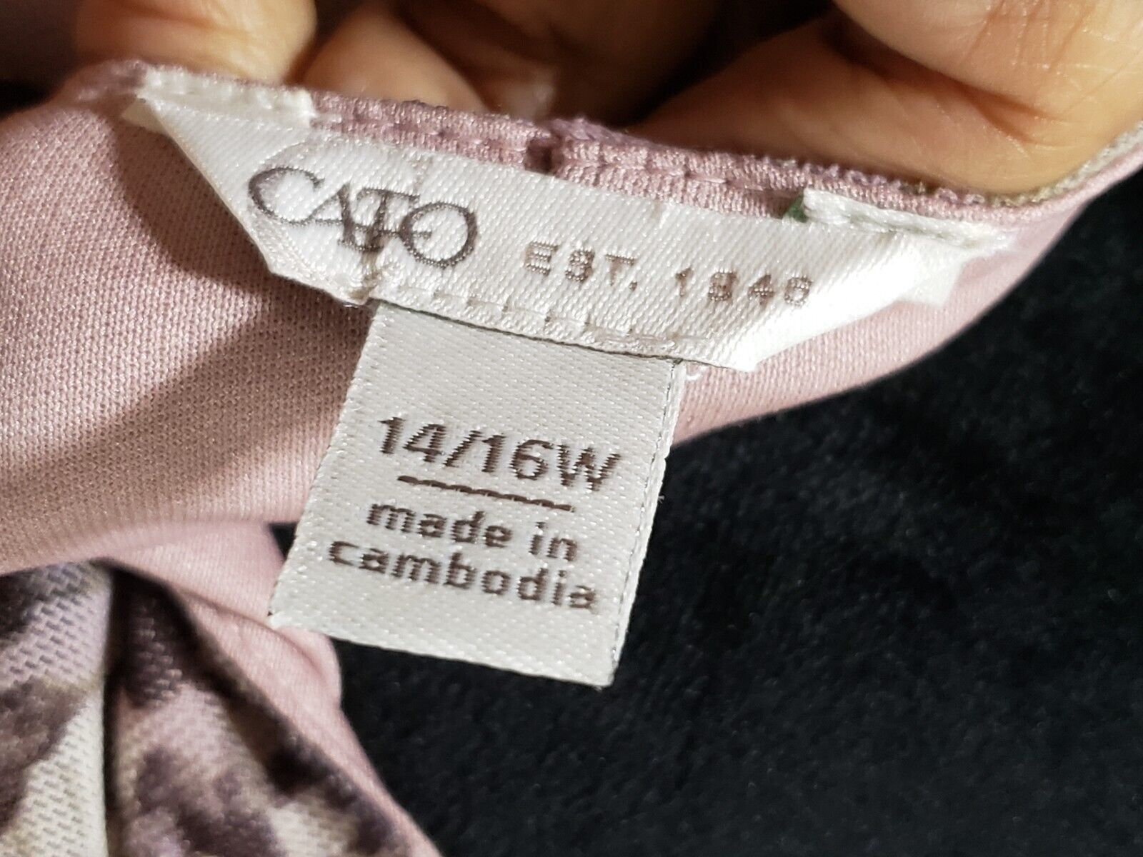 Cato Womens Pink Floral Mesh Nylon Long Sleeve Round Neck Top Blouse Size 14/16W