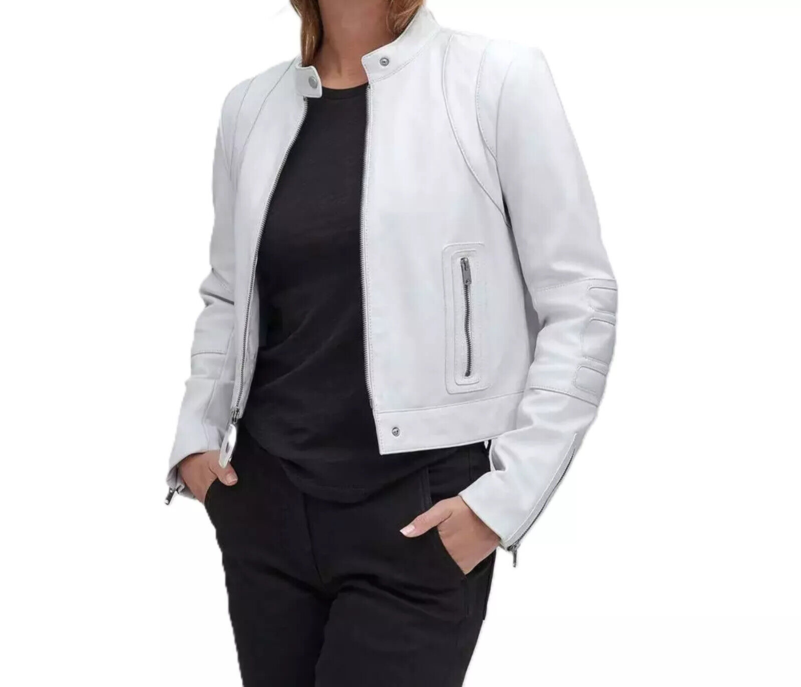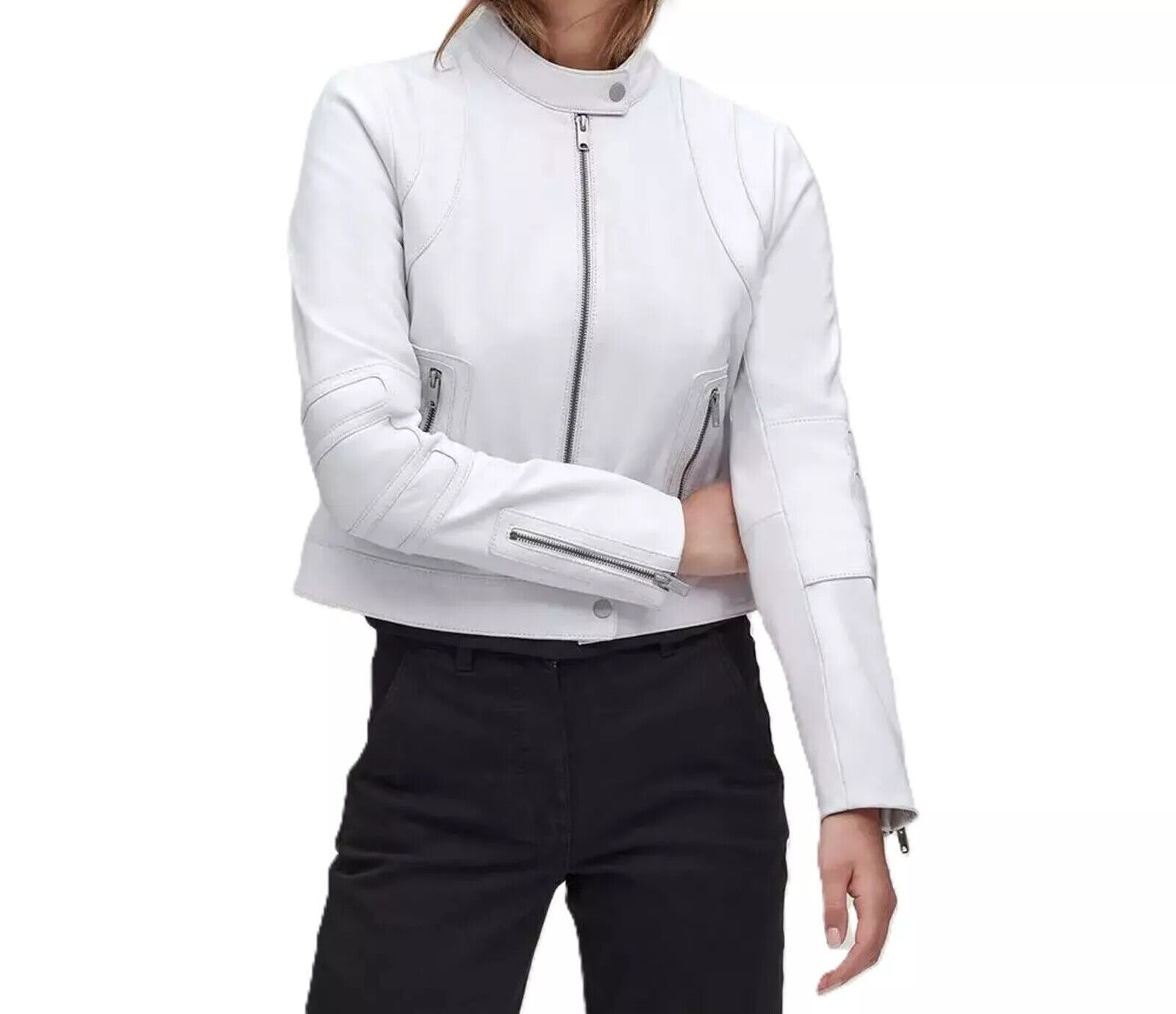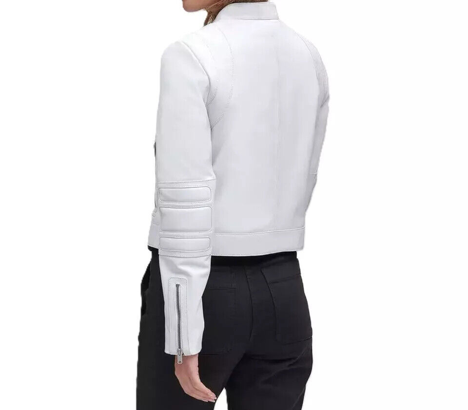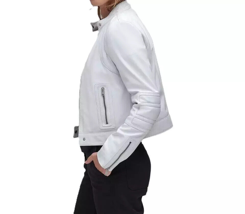 Genuine Lambskin Women's Pure White Leather Jacket Biker Moto Handmade Casual
