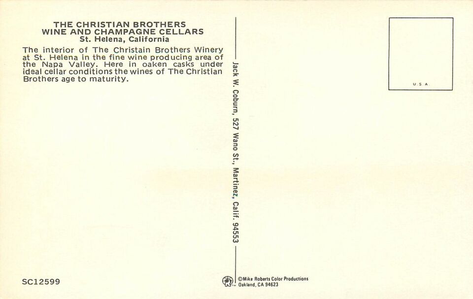 Chrome Postcard CA E383 Christian Brothers Wine Champagne Cellars St Helena Napa