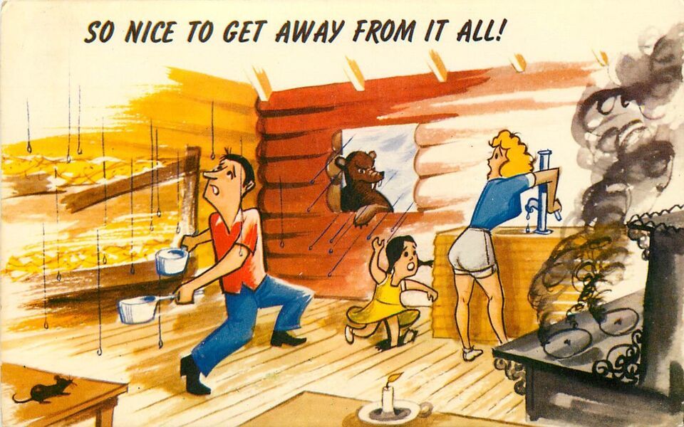 Chrome Comic Postcard G323 So Nice to Get Away From It all Camping Bear Humor