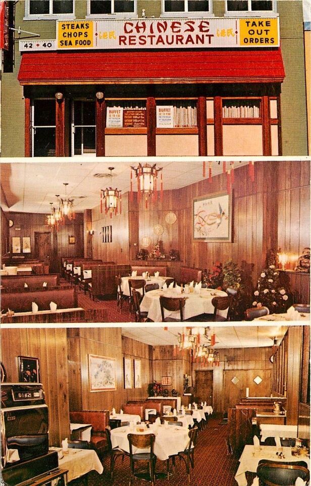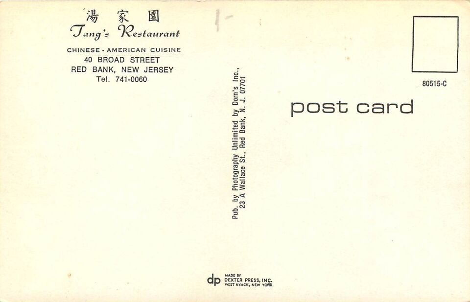 Chrome Postcard NJ F420 Tangs Chinese Restaurant Multiview Red Bank Broad St