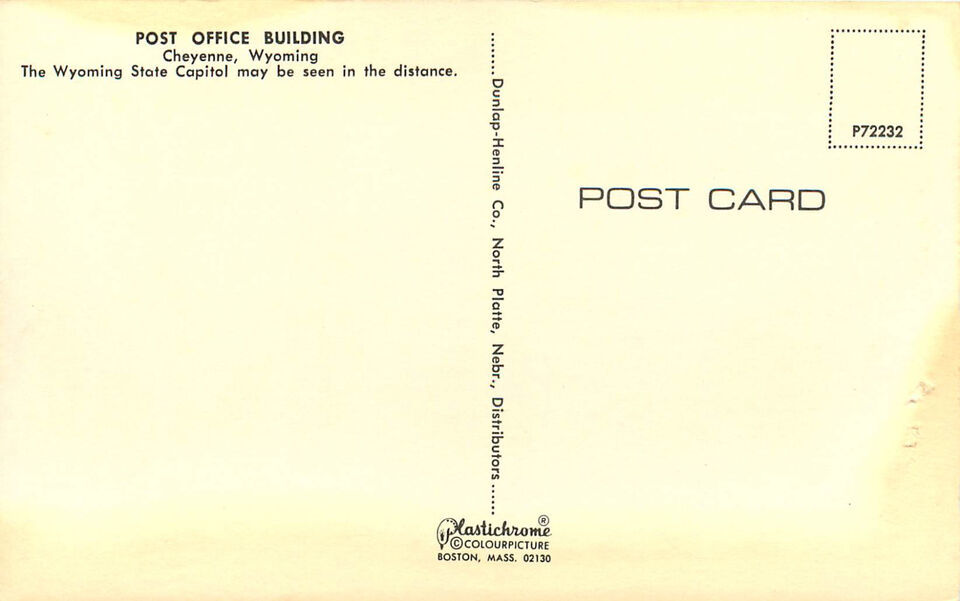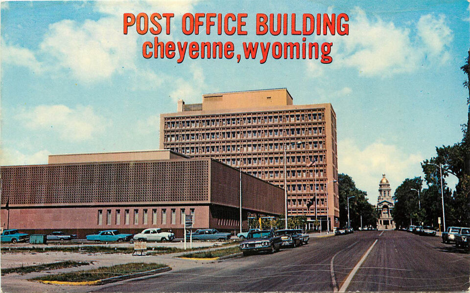 Vintage Chrome Postcard WY C292 Post Office Building Cheyenne Street View