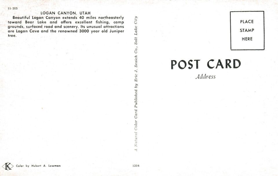 Old Chrome Postcard B248 Logan Canyon Utah Bear Lake Fishing Camping Scenery